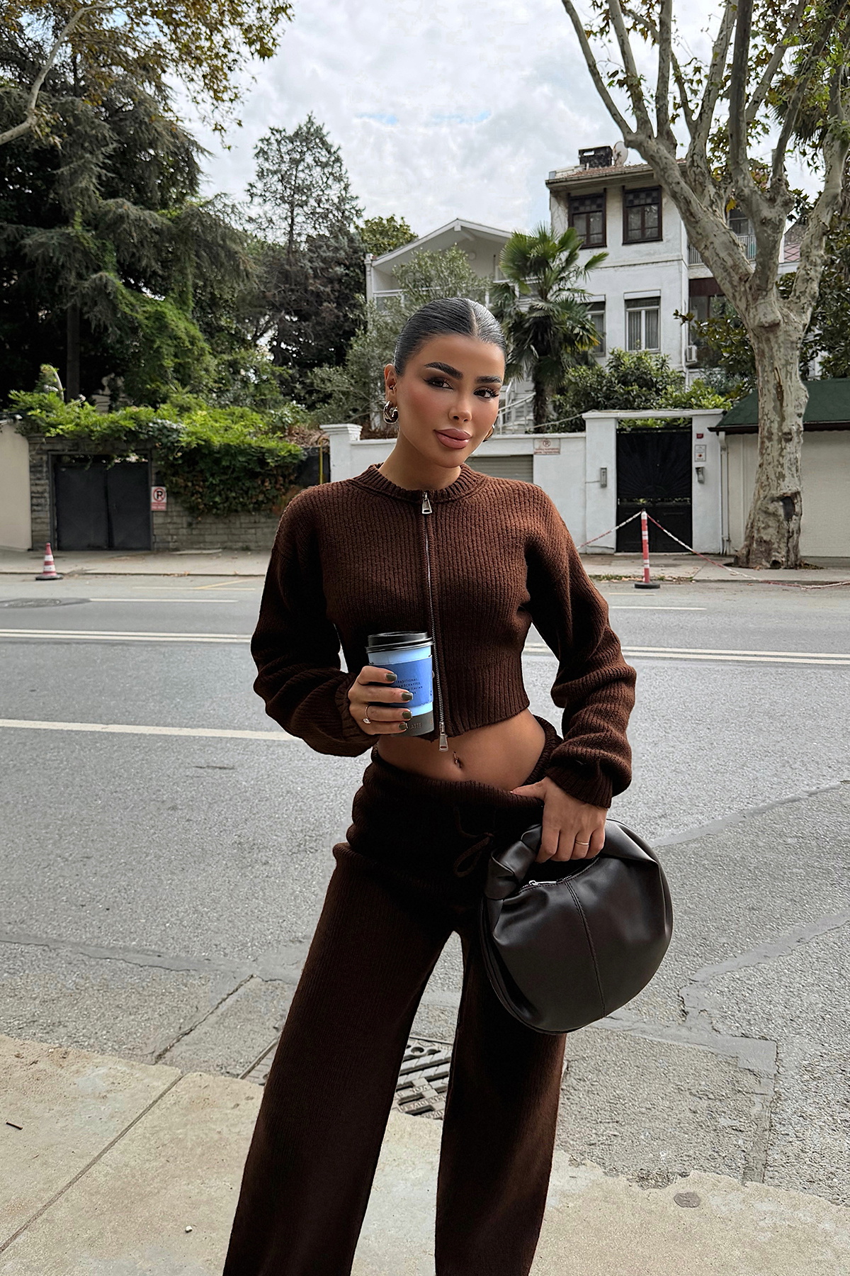 Acı Kahve Zaria Triko Takım – Şık & Fonksiyonel Uyumluluk