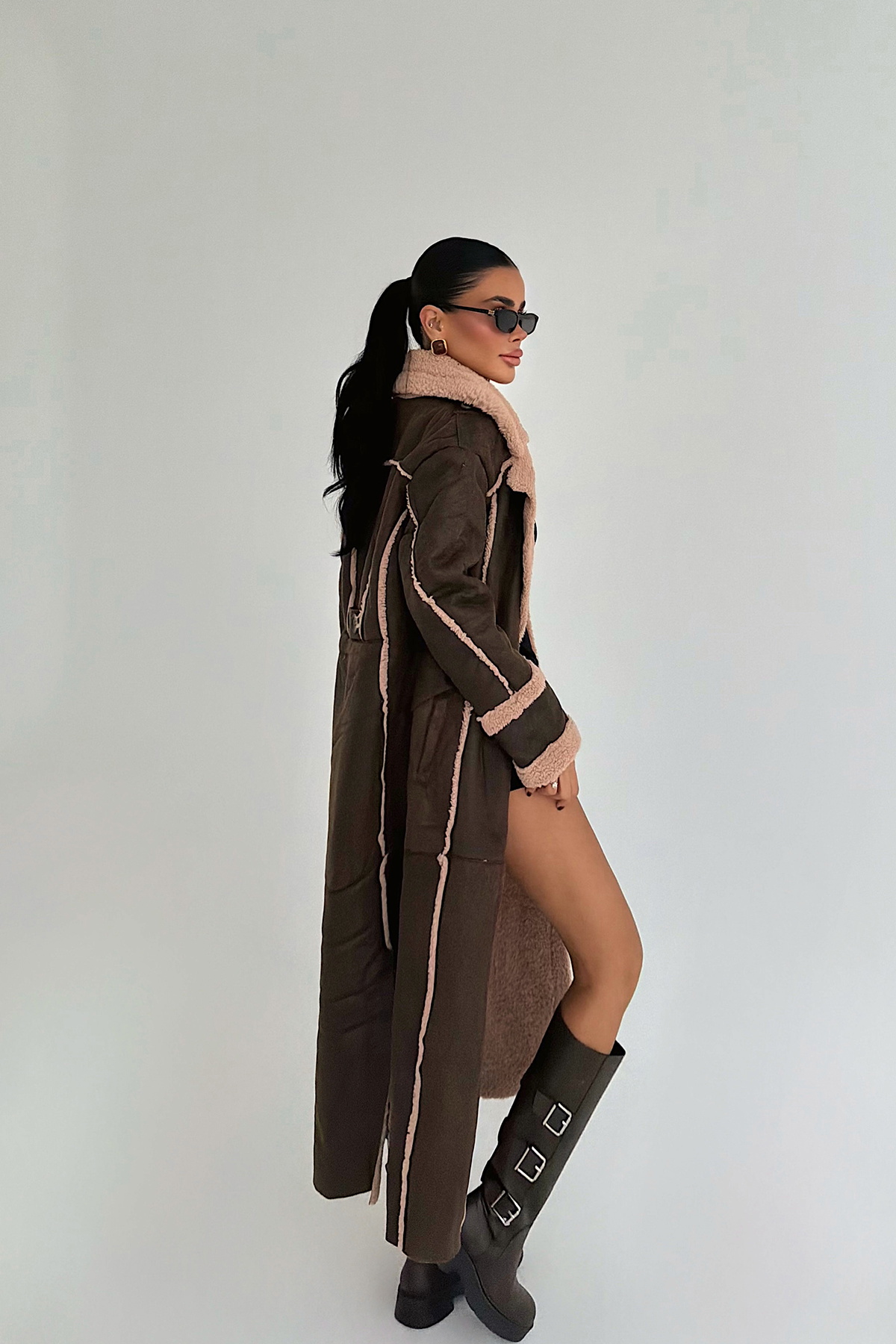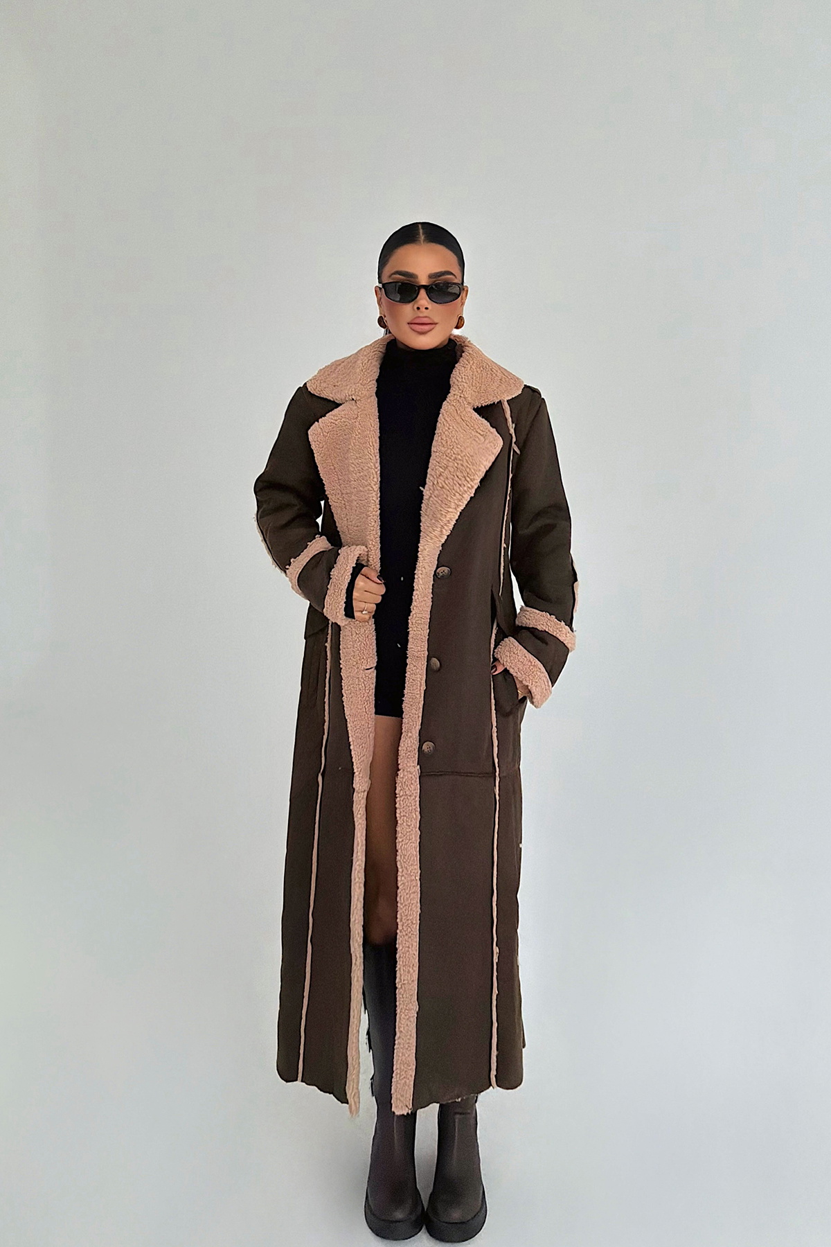 Zarif düğme detaylarıyla öne çıkan bu siyah kaşe kaban, sade ama etkileyici bir dış giyim parçası arayanlar için mükemmel bir tercih. Temiz çizgileri ve klasik kesimiyle şehir stilinde şıklığı yakalarken, kalın kaşe kumaşı soğuk günlerde sıcak tutar. Ön cepleriyle hem işlevsellik kazandırır hem de görünümüne karakter katar. Her mevsim gardırobunuzda yer alabilecek “zamansız” bir parça.