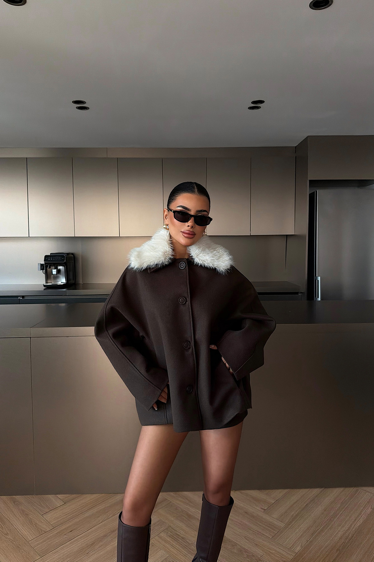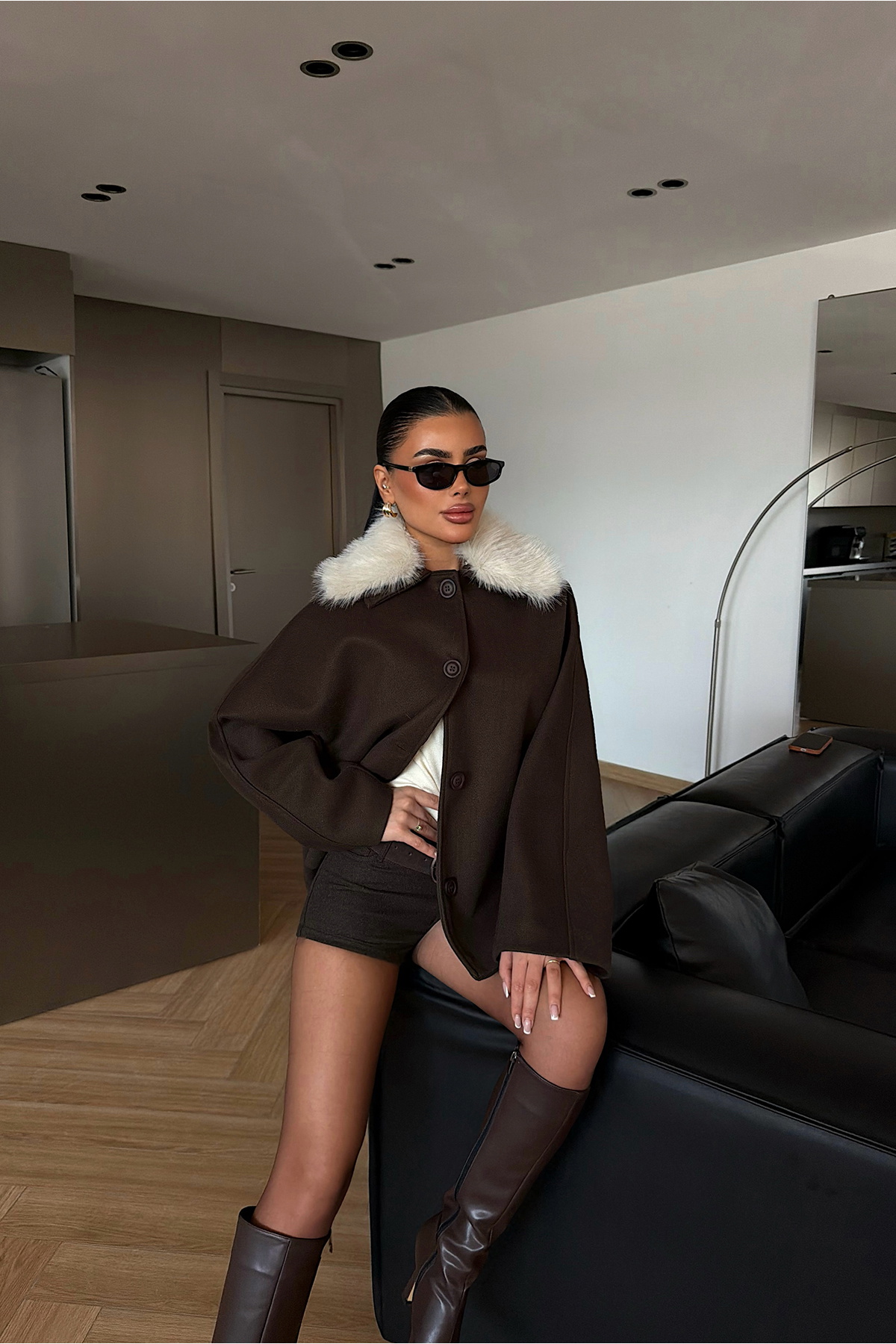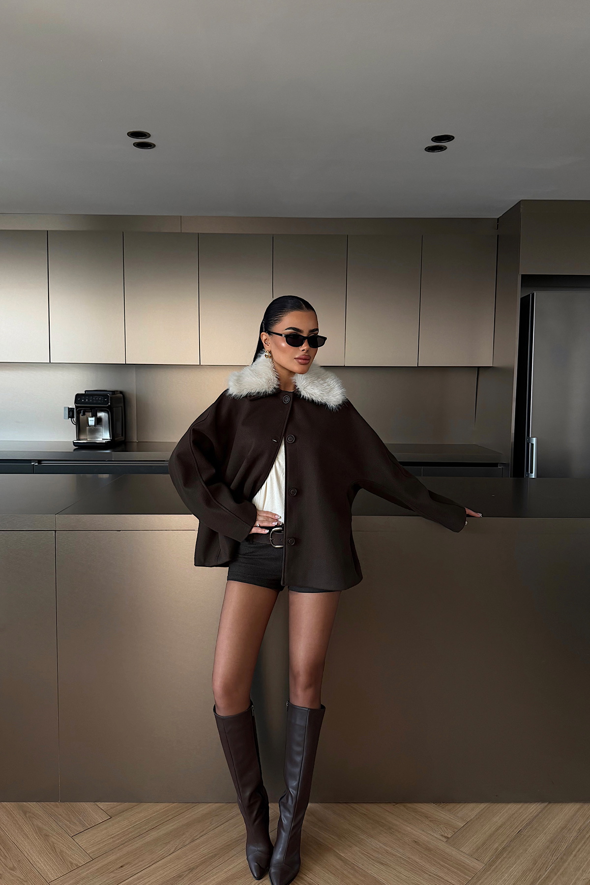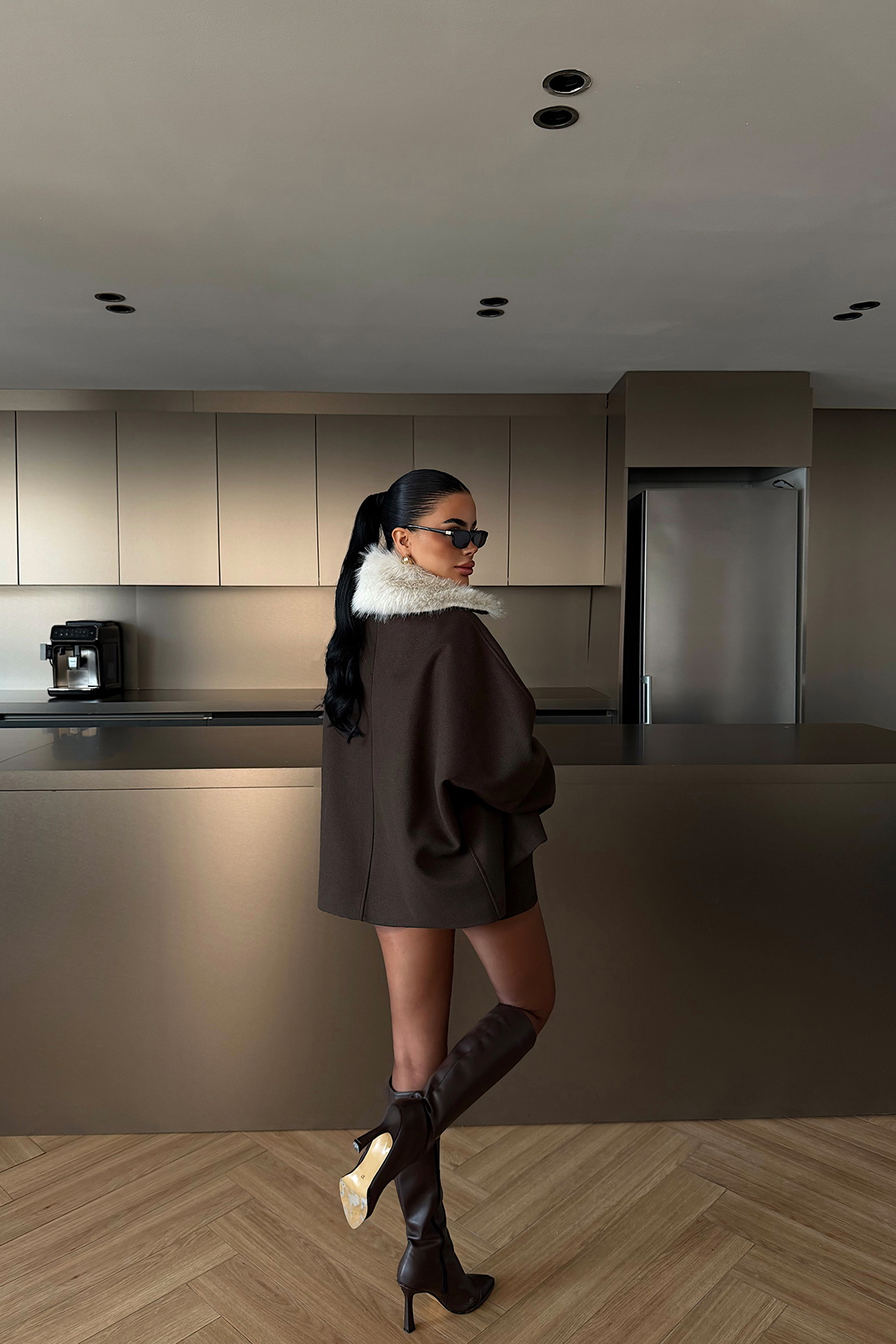 Acı Kahve Kürk Detay Ceket ATE-4734