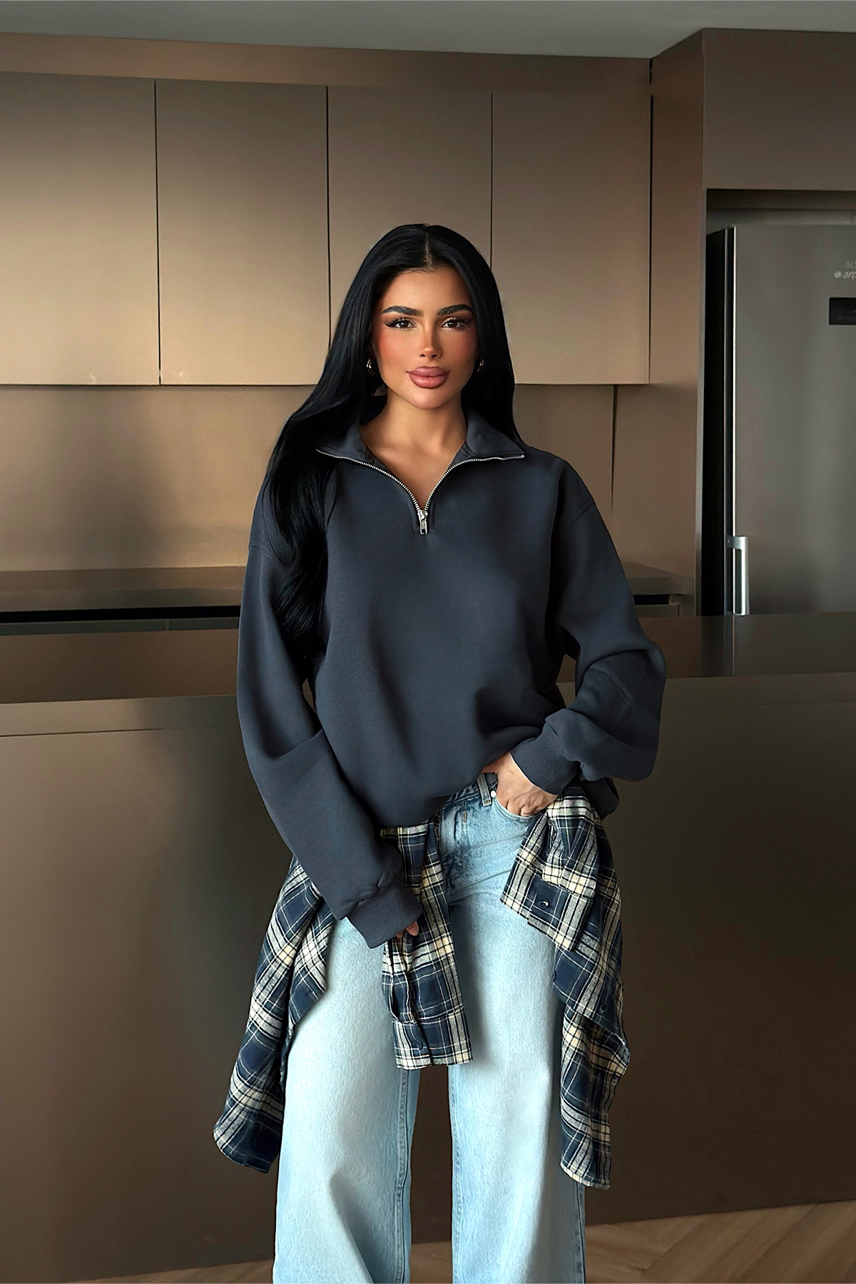 Yarım fermuarlı yaka detayı ve rahat kesimiyle öne çıkan sweatshirt, yumuşak dokulu yapısıyla gün boyu konfor sunar. Minimal tasarımı sayesinde günlük kombinlerde ve şehir stilinde kolayca uyum sağlayan, zamansız bir parçadır.
