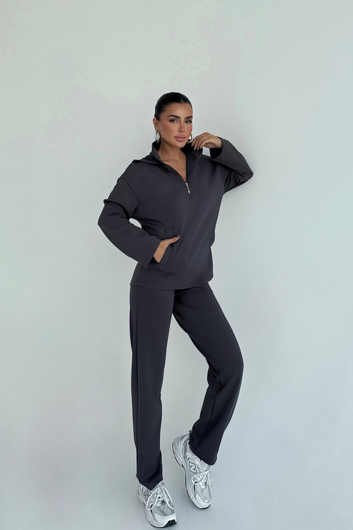 Antrasit Naerys Fermuar Detaylı Eşofman Takım – Modern ve Fonksiyonel Stil