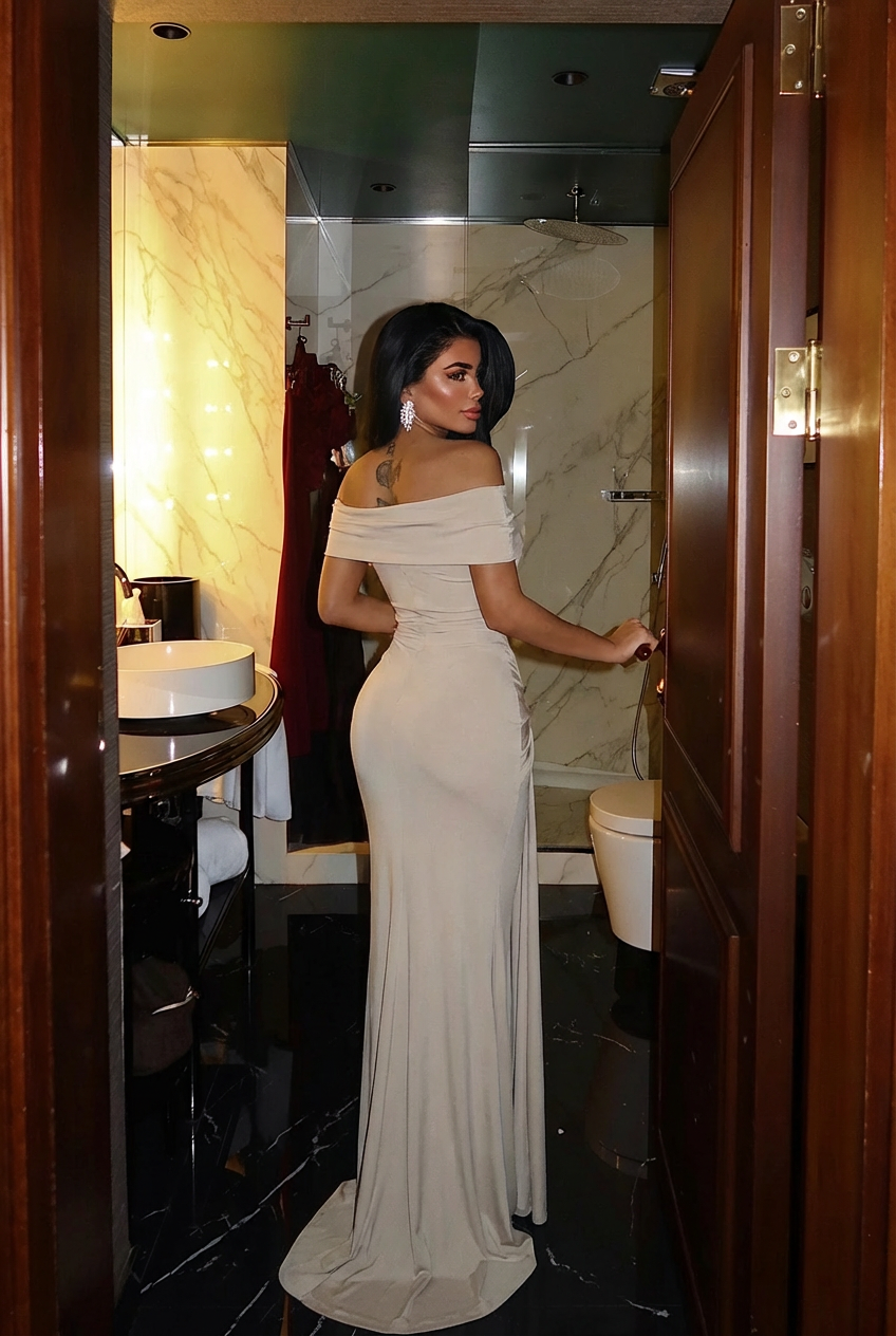 Bej Allayia uzun elbise, doğal tonlarıyla sofistike ve zarif bir görünüm sunar. Akıcı kumaşı ve uzun kesimi ile hem rahat hem de şık bir kullanım sağlar. Günlük kombinlerden özel davetlere kadar pek çok ortamda stilinizi tamamlar.