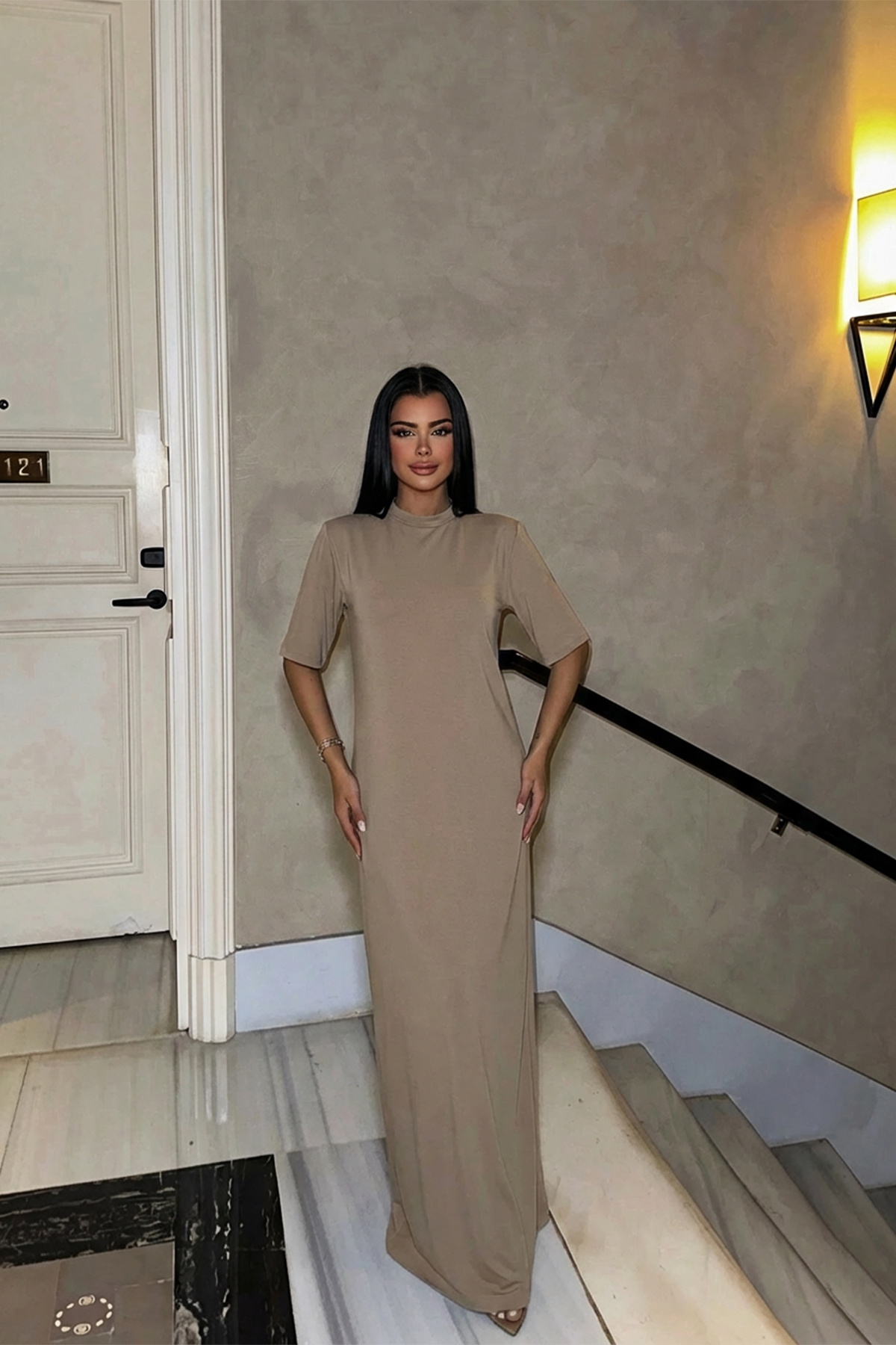 Bej Roland Uzun Elbise