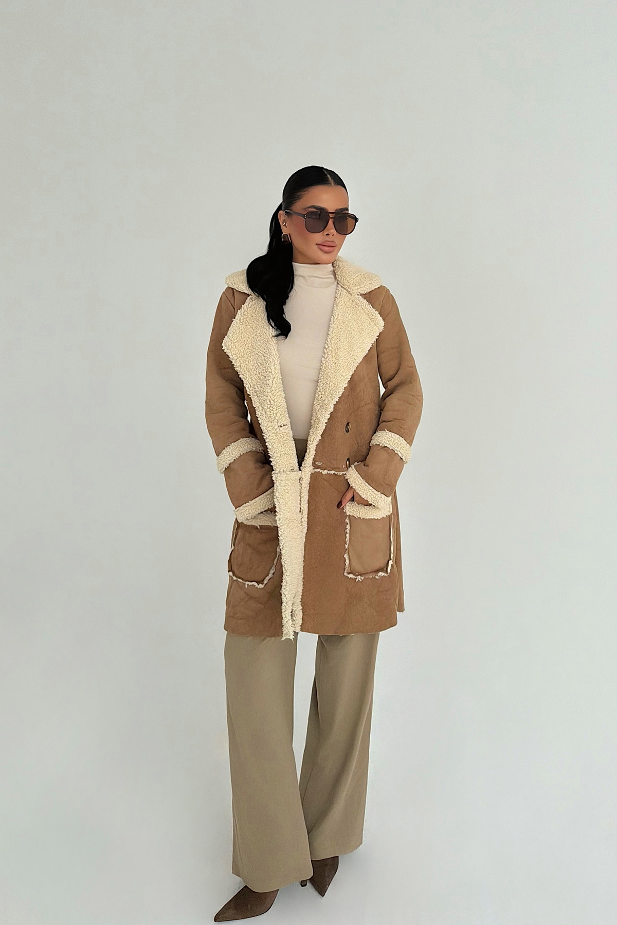 Bu bej tonundaki kaban, ön düğme detaylarıyla klasik duruşunu korurken modern bir hava sunuyor. Diz üstü ya da orta boy kesimi sayesinde hem günlük şehir kullanımına hem de ofis stiline hızlıca adapte oluyor. Temiz çizgiler ve tek renk tasarım, aksesuarlarla kolay kombinlenebilir. Astarlı iç yüzeyi ve kaliteli kumaşıyla soğuk havalarda konfor sağlıyor — stil ve fonksiyonu bir arada sunan ideal bir dış giyim parçası.