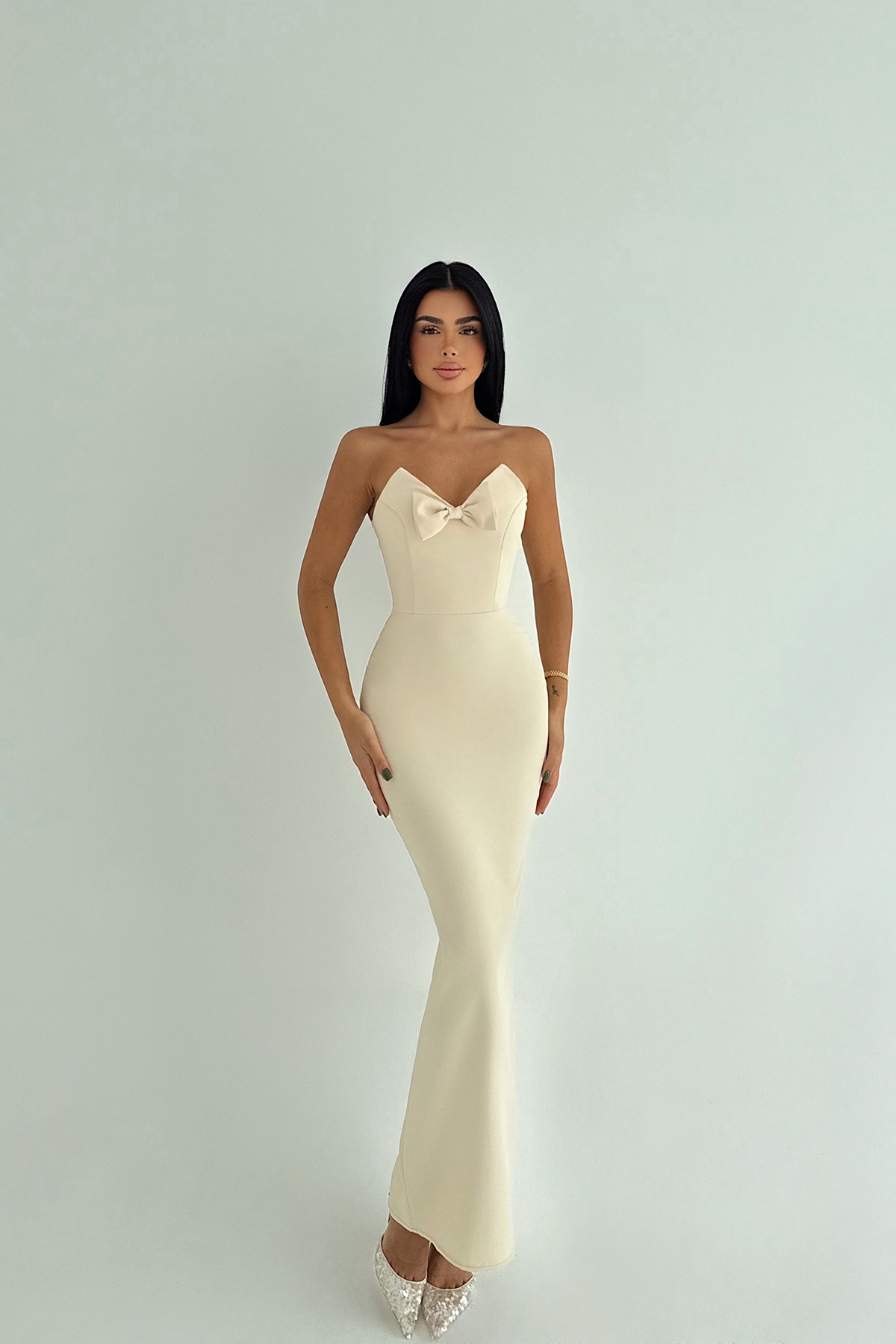 Soft bej tonu ile öne çıkan Cressida elbise, özel davetlerde feminen ve şık bir duruş sunar. Akıcı kumaşı ve modern kesimi sayesinde hem rahat hem de zarif bir kullanım sağlar. Düğün, nişan ve davetlerde stilinizi sofistike bir dokunuşla tamamlar.