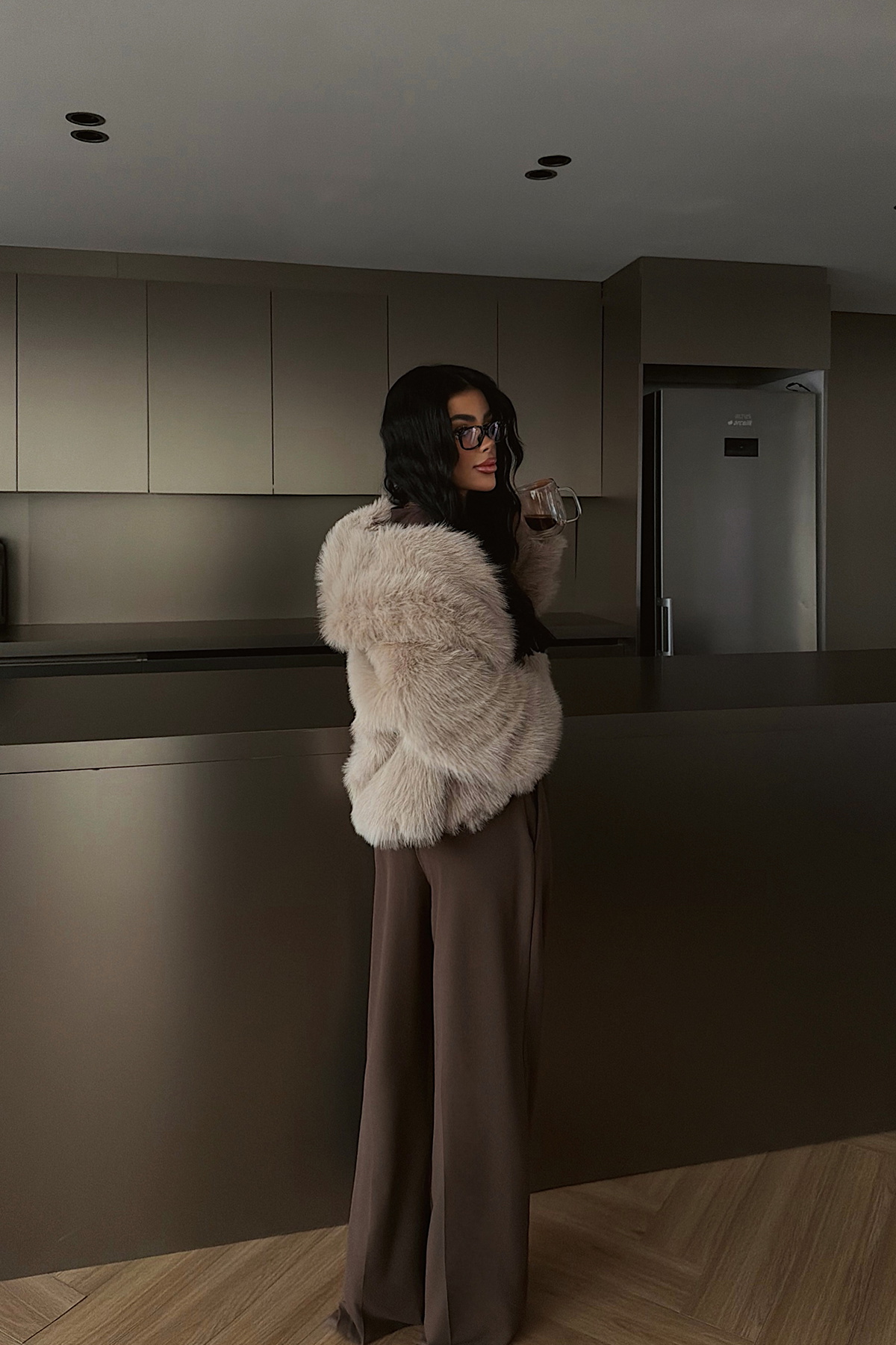 Soğuk kış günlerinde hem konforu hem şıklığı bir arada sunan Bej Rufina Kürk Ceket ile tarzınızı öne çıkarın. Yumuşak dokusu, hacimli kürk kaplaması ve modern kısa kesimi sayesinde şehir stiline sıcak bir dokunuş katıyor. Rahat kalıbı sayesinde kazak ve sweatlerle kolayca kombinlenirken, kışın favori dış giyim parçalarınızdan biri olmaya aday. Günlük kullanımda maksimum konfor sağlayan bu mont, soğuktan korurken görünümünüze şık bir hava katacak.