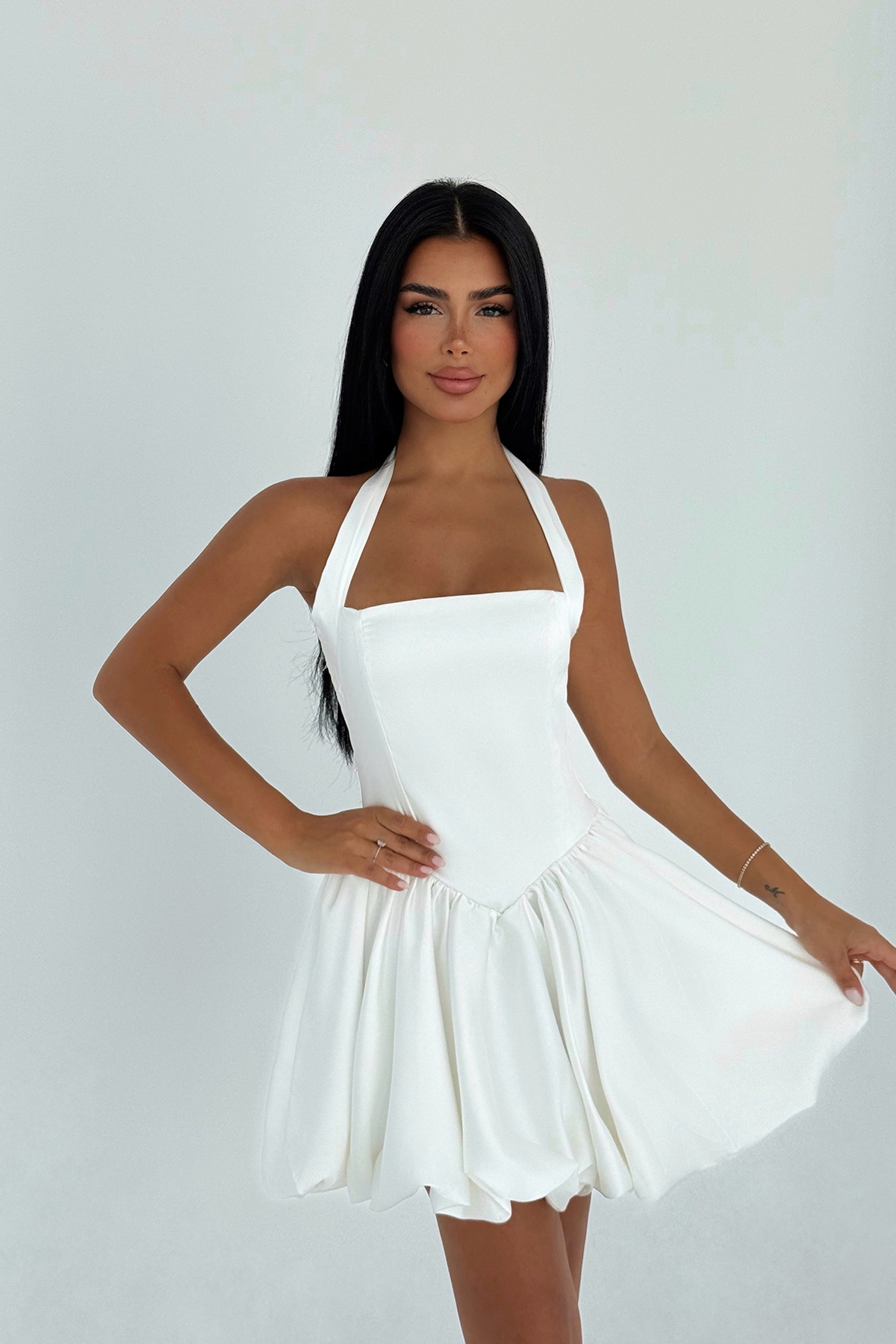 Beyaz Estella Mini Etek Ucu Balon Elbise – Zarif ve Feminen Tasarım