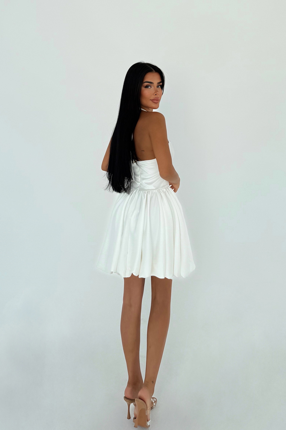 Beyaz Estella Mini Etek Ucu Balon Elbise