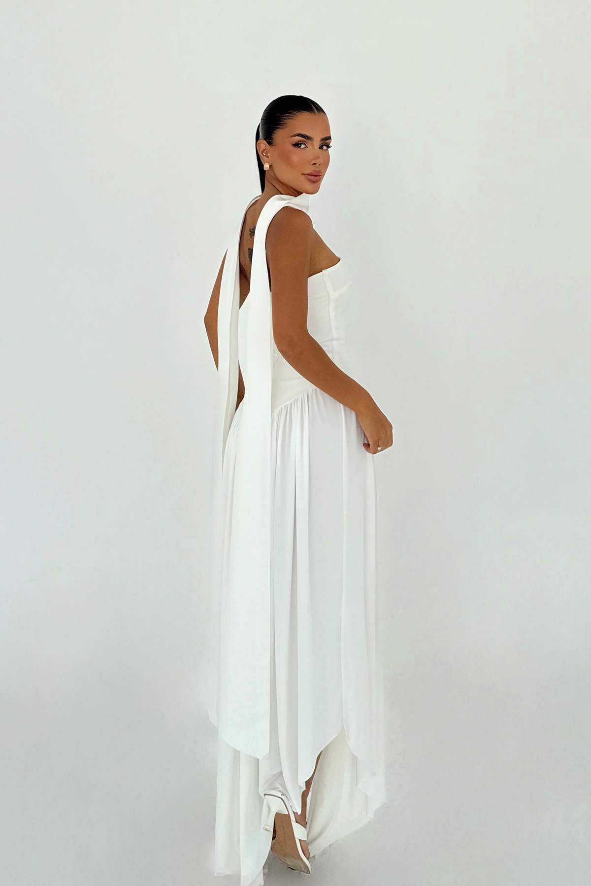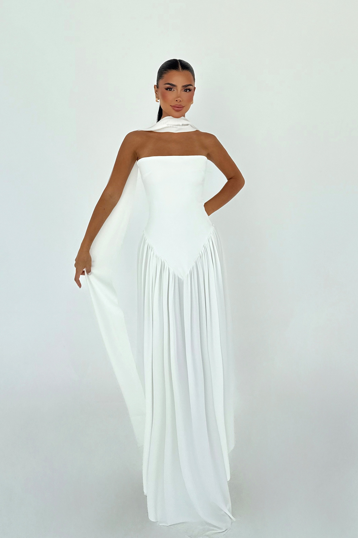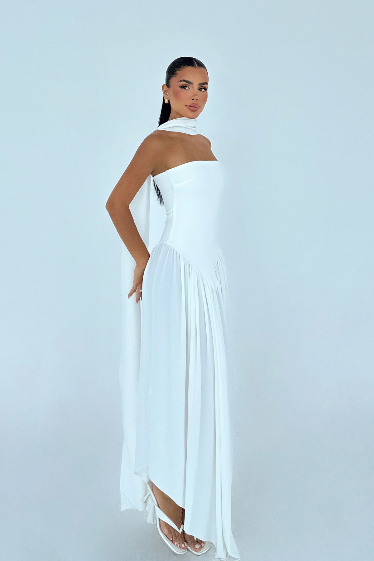 Beyaz Sinatra Uzun Elbise – Saf ve Zarif Şıklık
