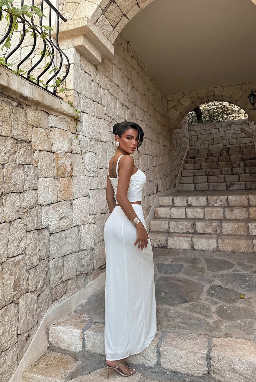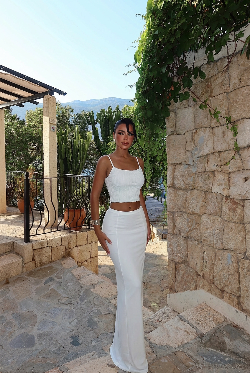 Yaz mevsiminin taptaze enerjisini ve zarafetini yansıtan bu beyaz etekli takım, sezonun favori parçalarından biri olmaya aday. Hafif ve akıcı kumaşıyla sıcak hava günlerinde rahatlıkla tercih edebileceğiniz bu şık takım, hem günlük kullanımda hem de özel davetlerde size eşlik edebilir. Minimalist bir tasarıma sahip olan beyaz etek, modern ve zarif bir siluet sunarken, üst kısmıyla uyumlu detaylar, size şıklık katacak. Kombinlemek için aksesuar seçimlerinde altın veya gümüş tonları tercih edebilir, hafif makyaj ve topuklu sandaletlerle zarif bir görünüm elde edebilirsiniz. Yaz stilinizi tamamlayacak bu takım, gardırobunuzun vazgeçilmez bir parçası olmaya aday!
