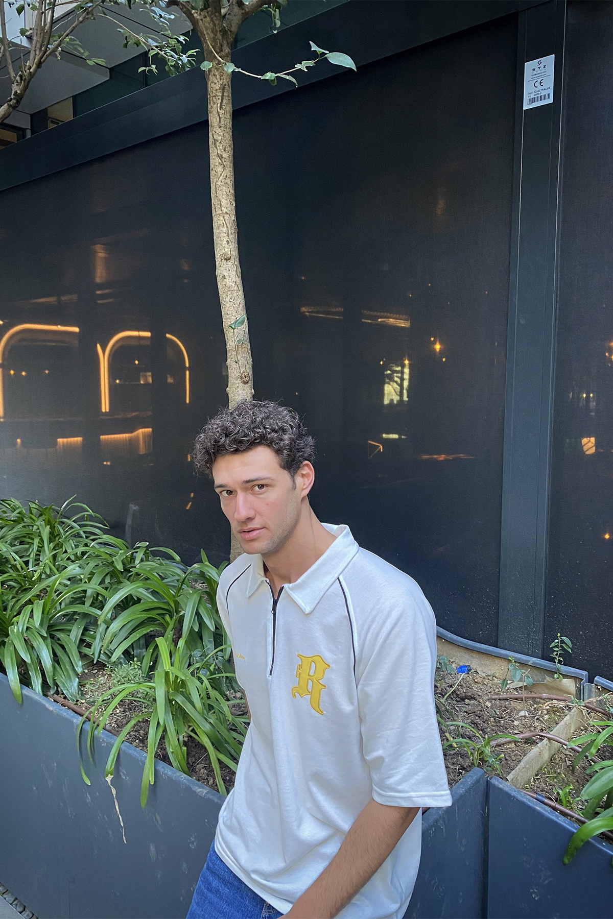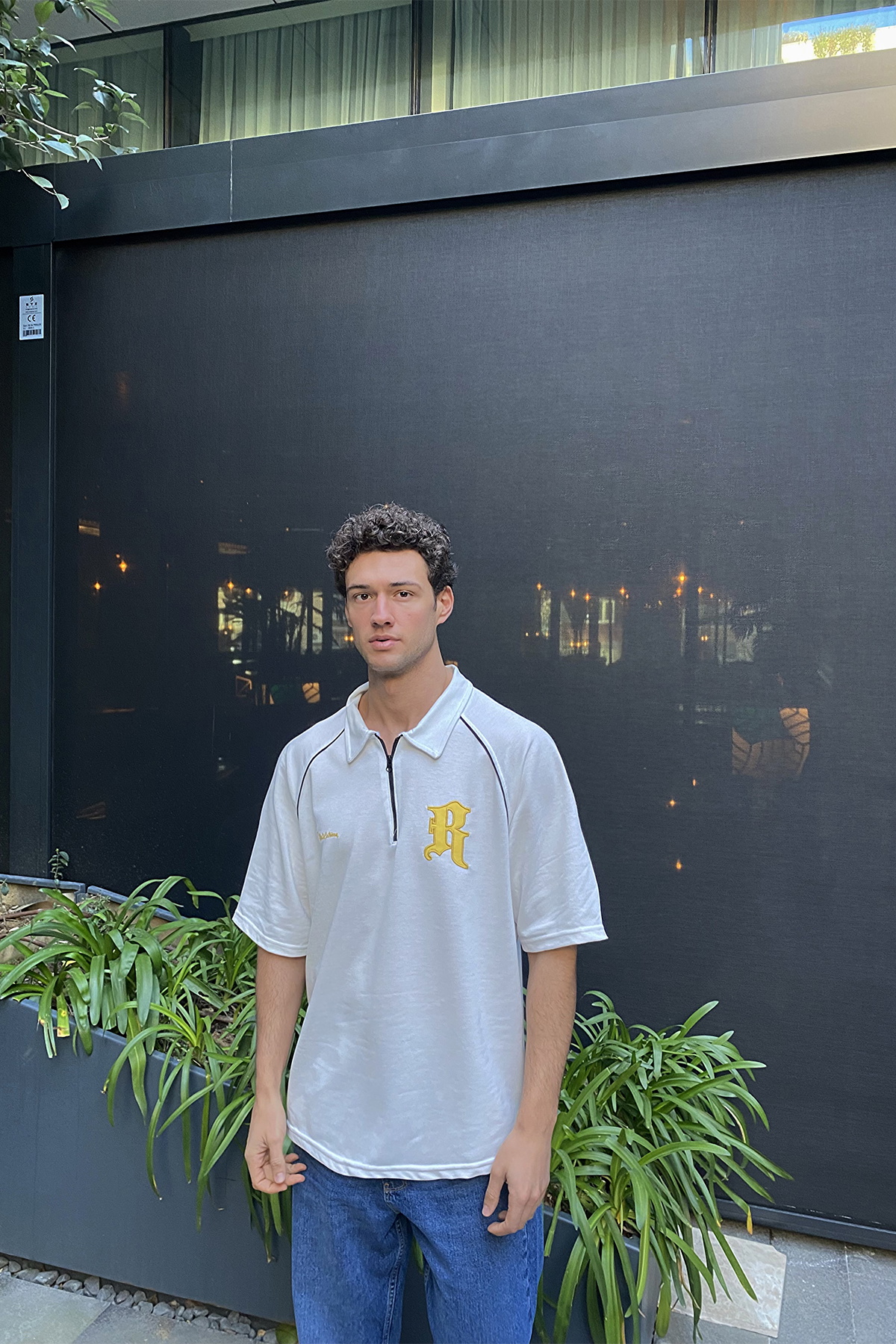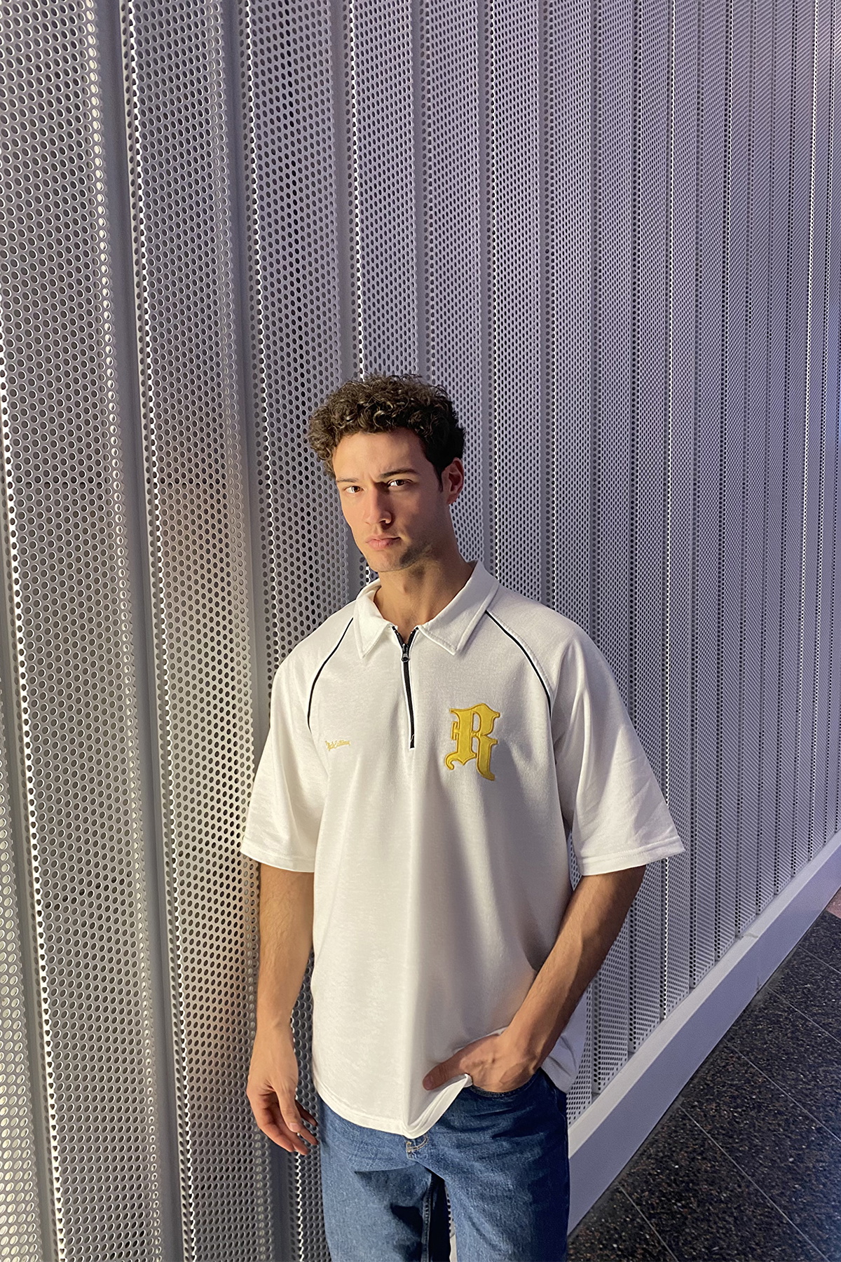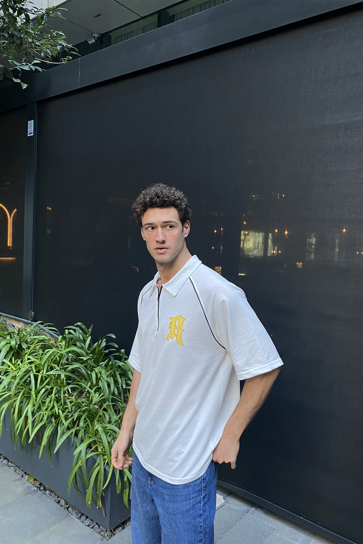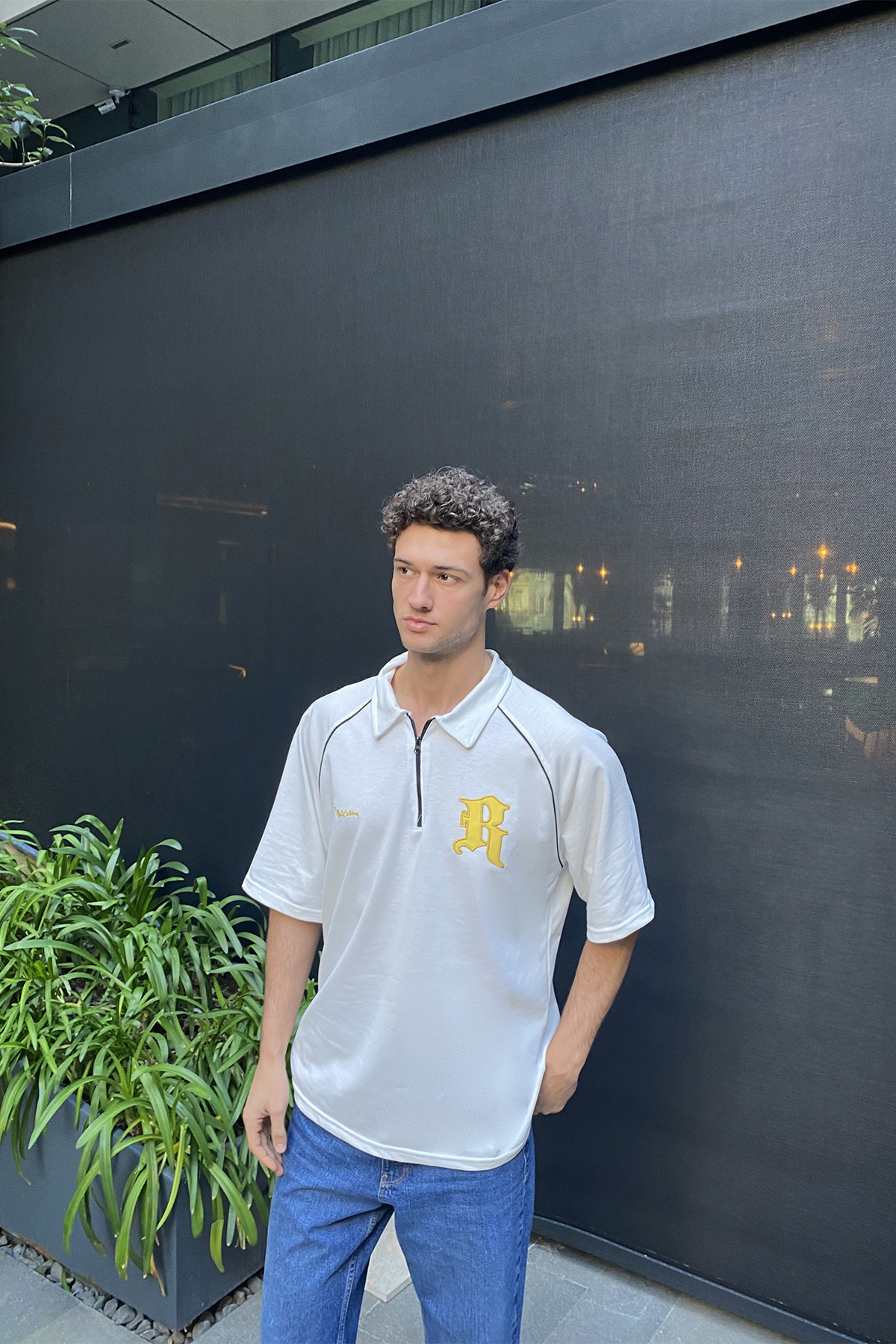 Beyaz Fermuarlı Kolej Yaka Tişört