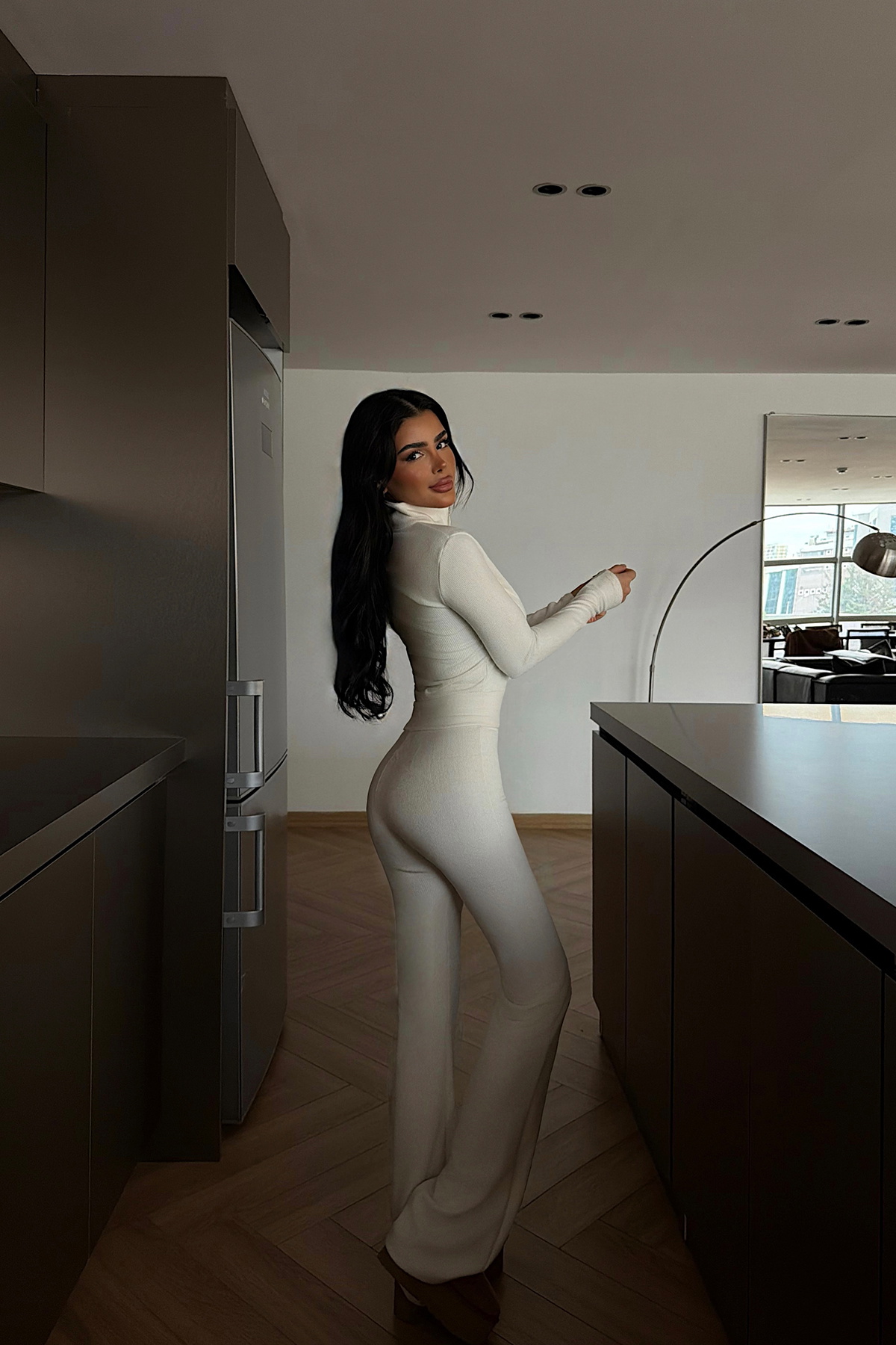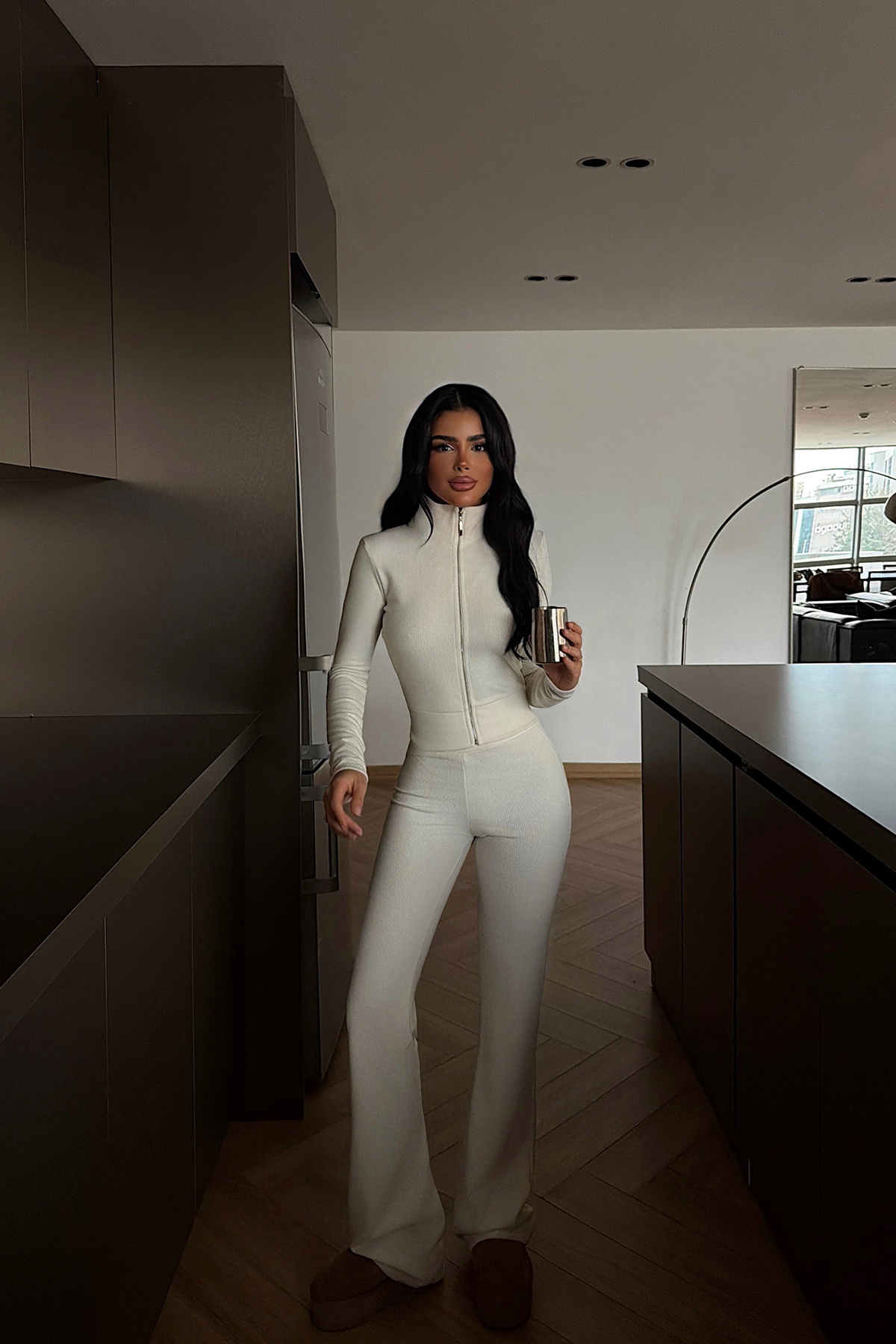 Vücuda oturan formu ve fermuarlı yüksek yaka detayıyla öne çıkan üst ve pantolon takımı, sade ve modern bir siluet sunar. Esnek yapısı sayesinde konforlu bir kullanım sağlarken, minimal tasarımıyla günlük ve şehir stilinde şık ve güçlü bir görünüm oluşturur.