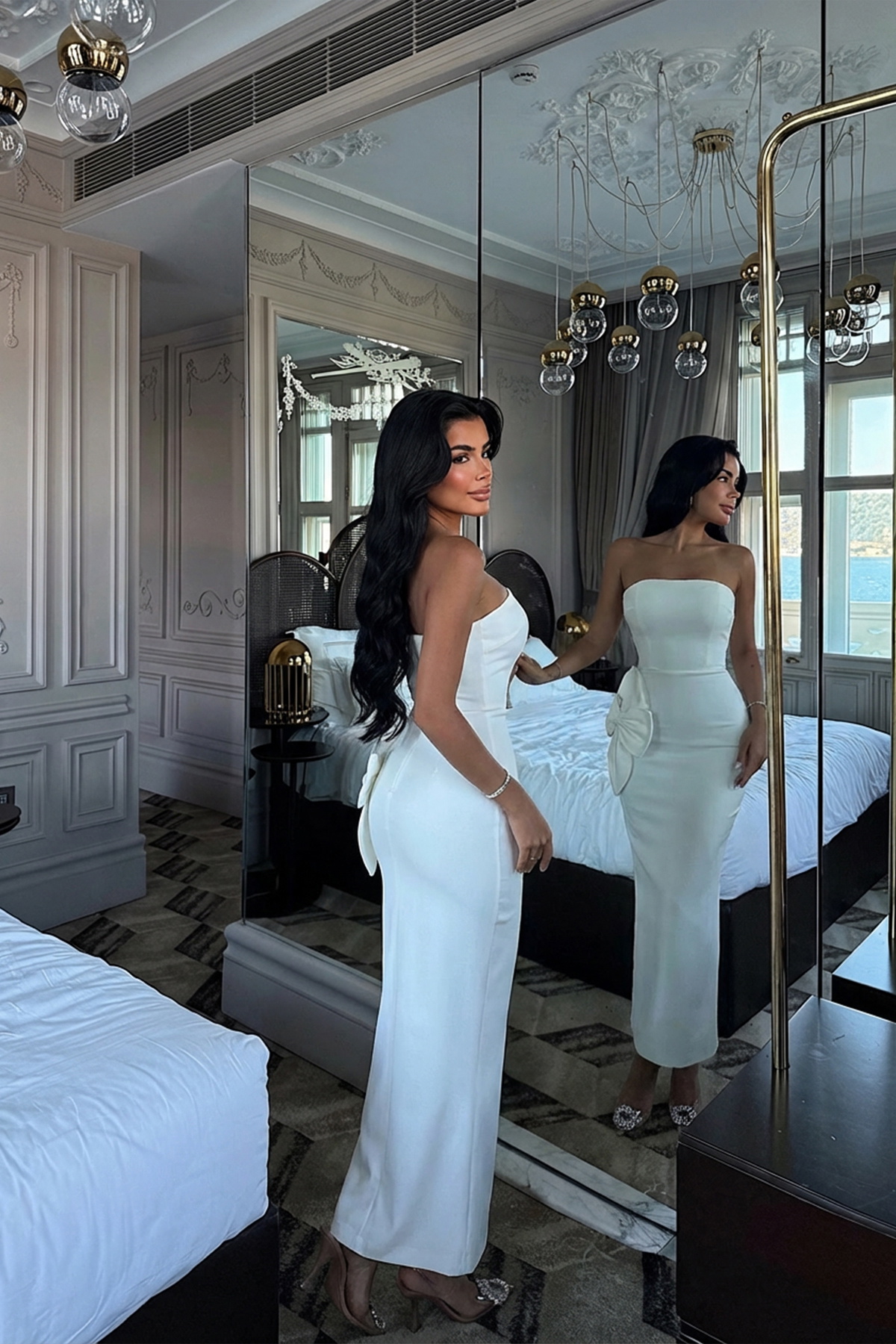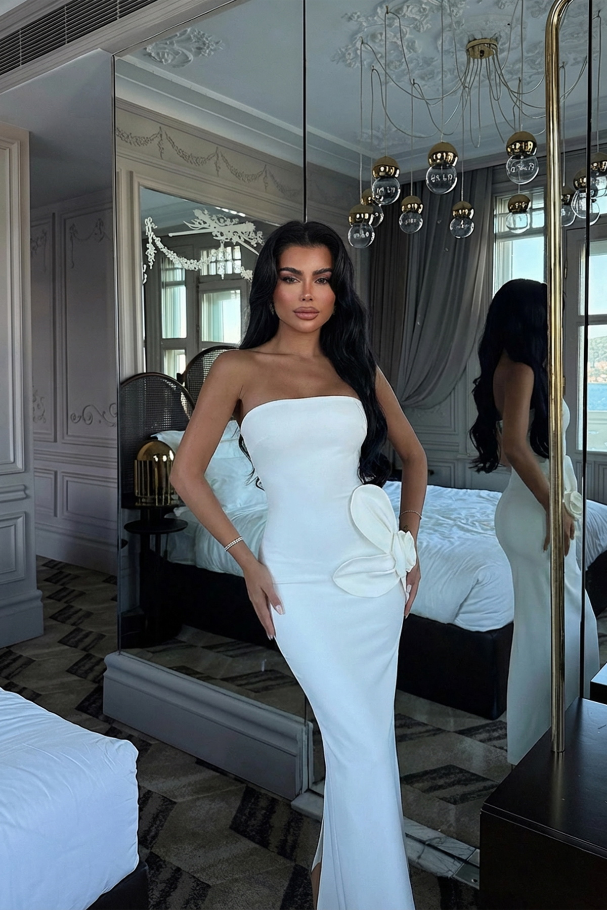 Beyaz Daysi Straplez Elbise