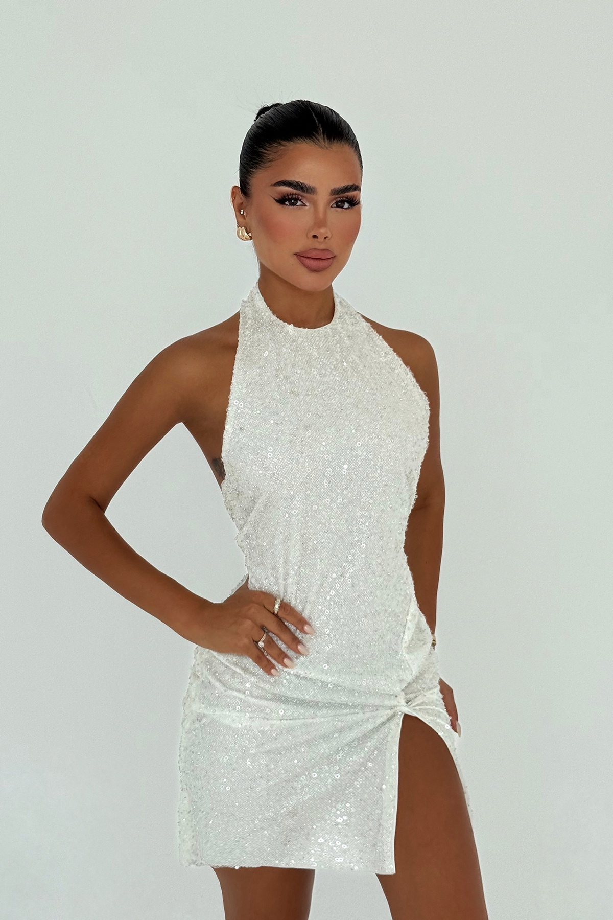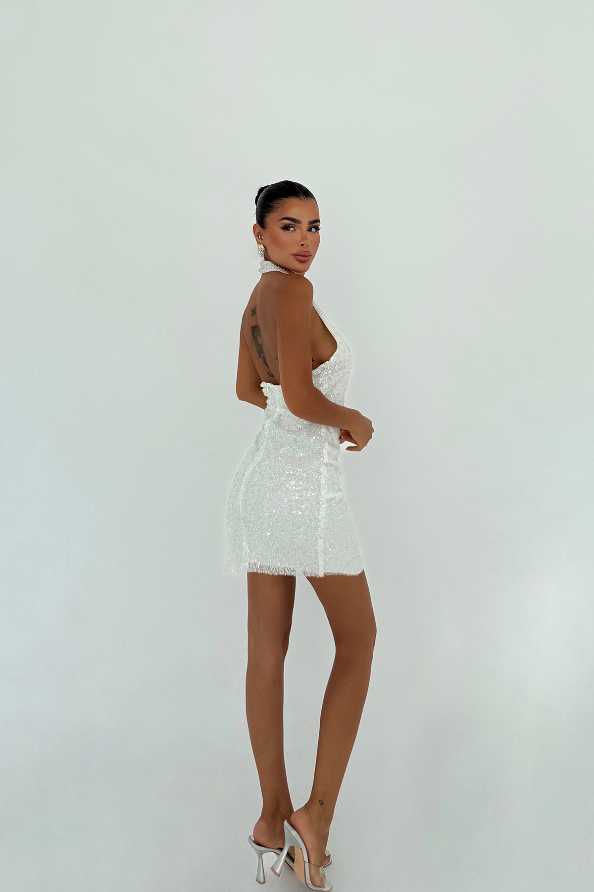 Beyaz Nateba Mini Elbise – Saf ve Ferah