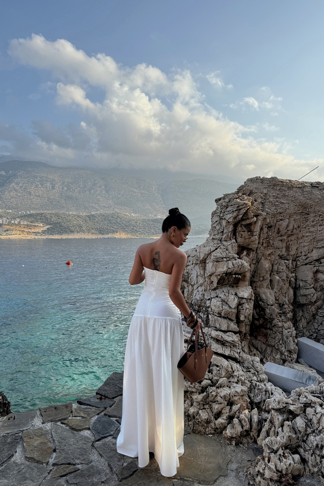 Beyaz Eldoris Straplez Elbise ATE-1395