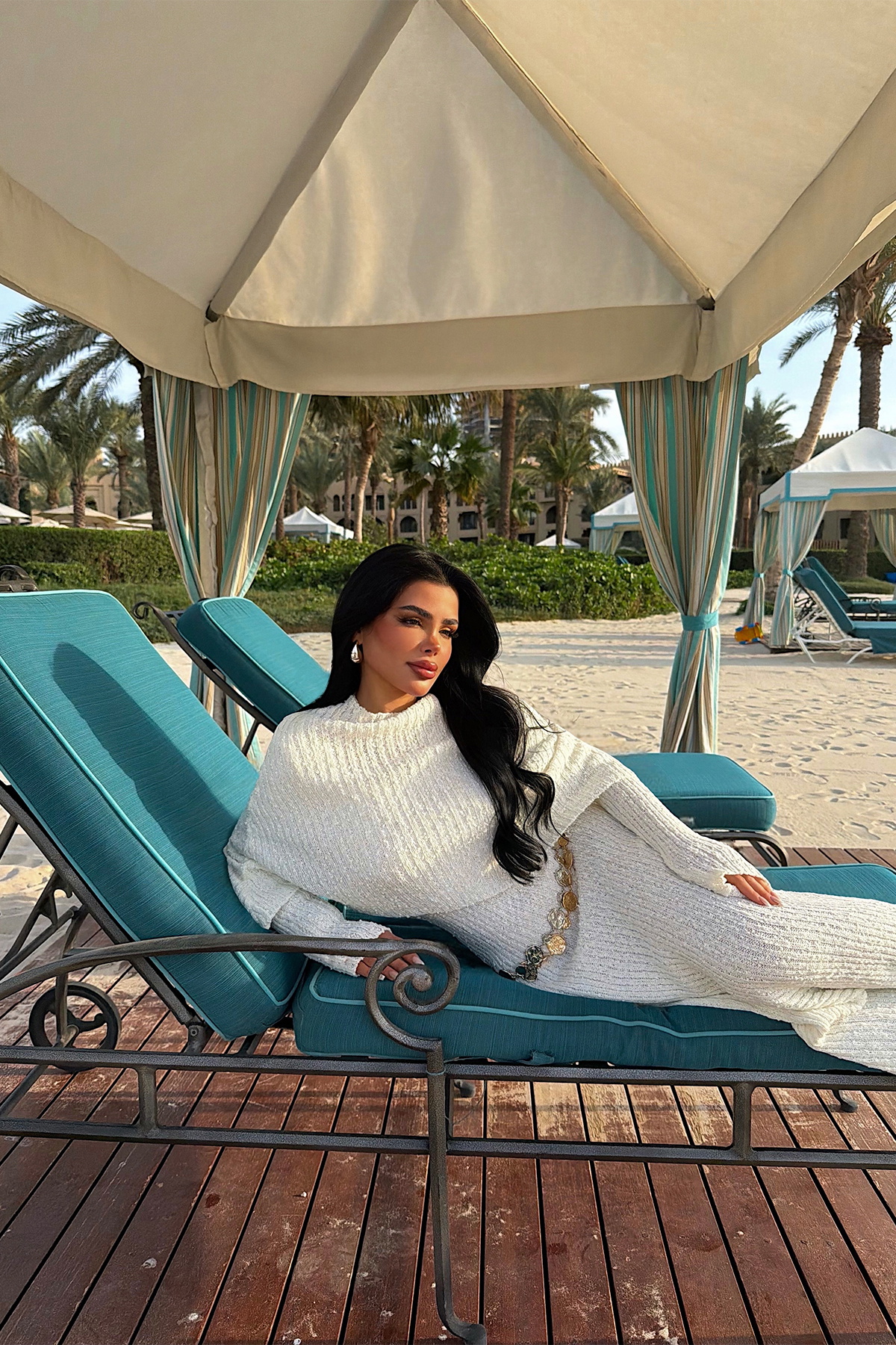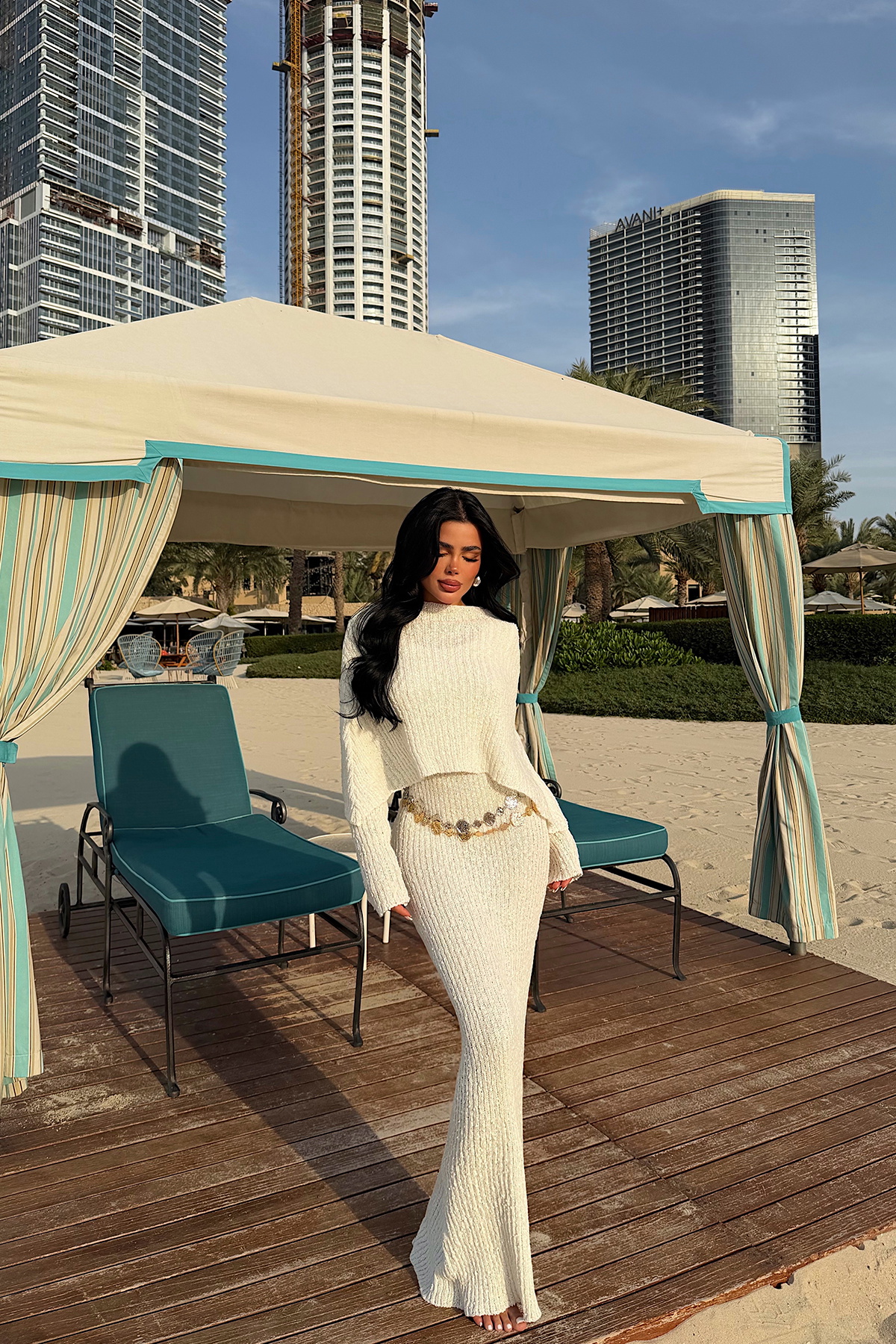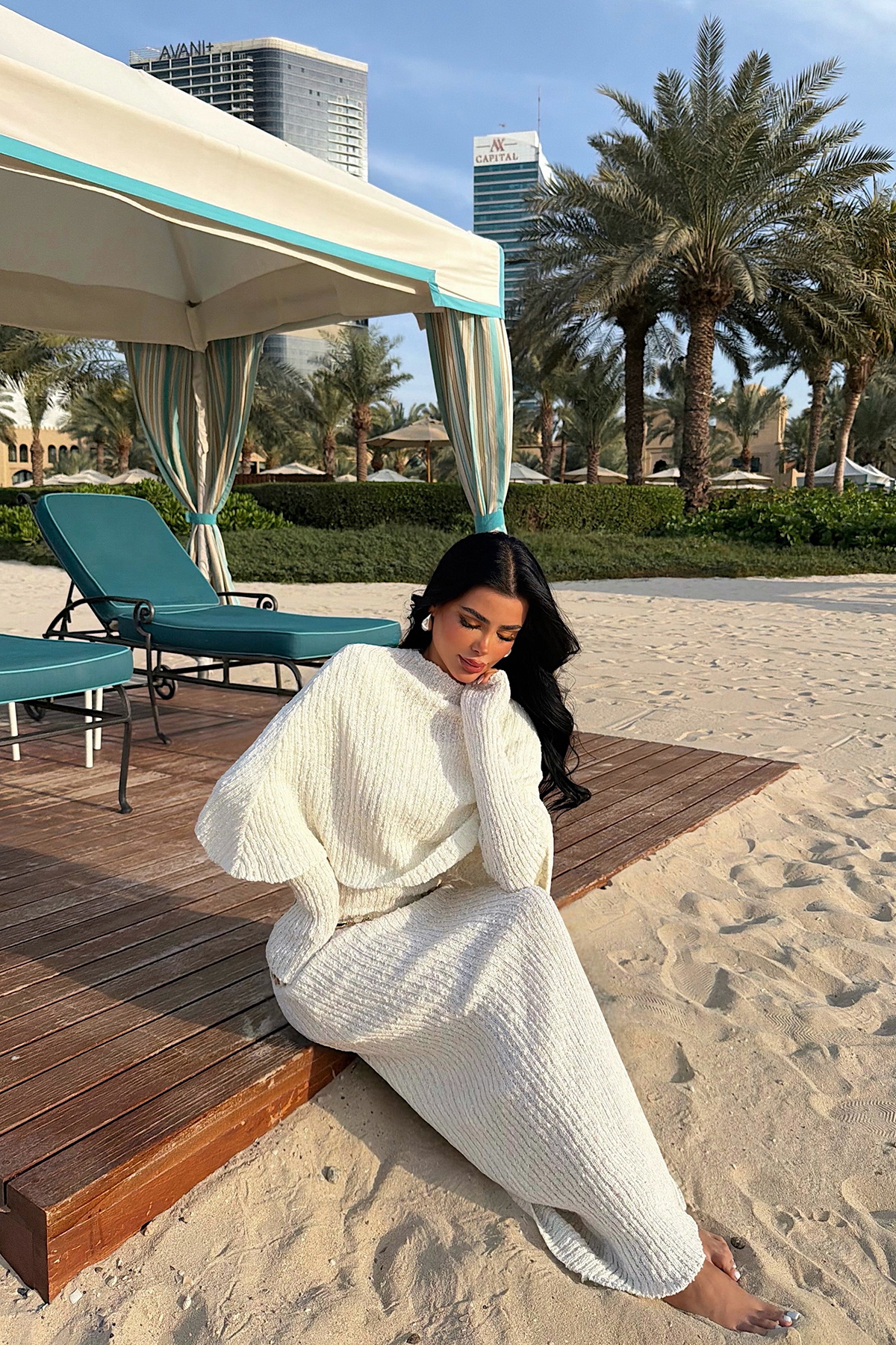 Beyaz Majorella Uzun Triko Elbise