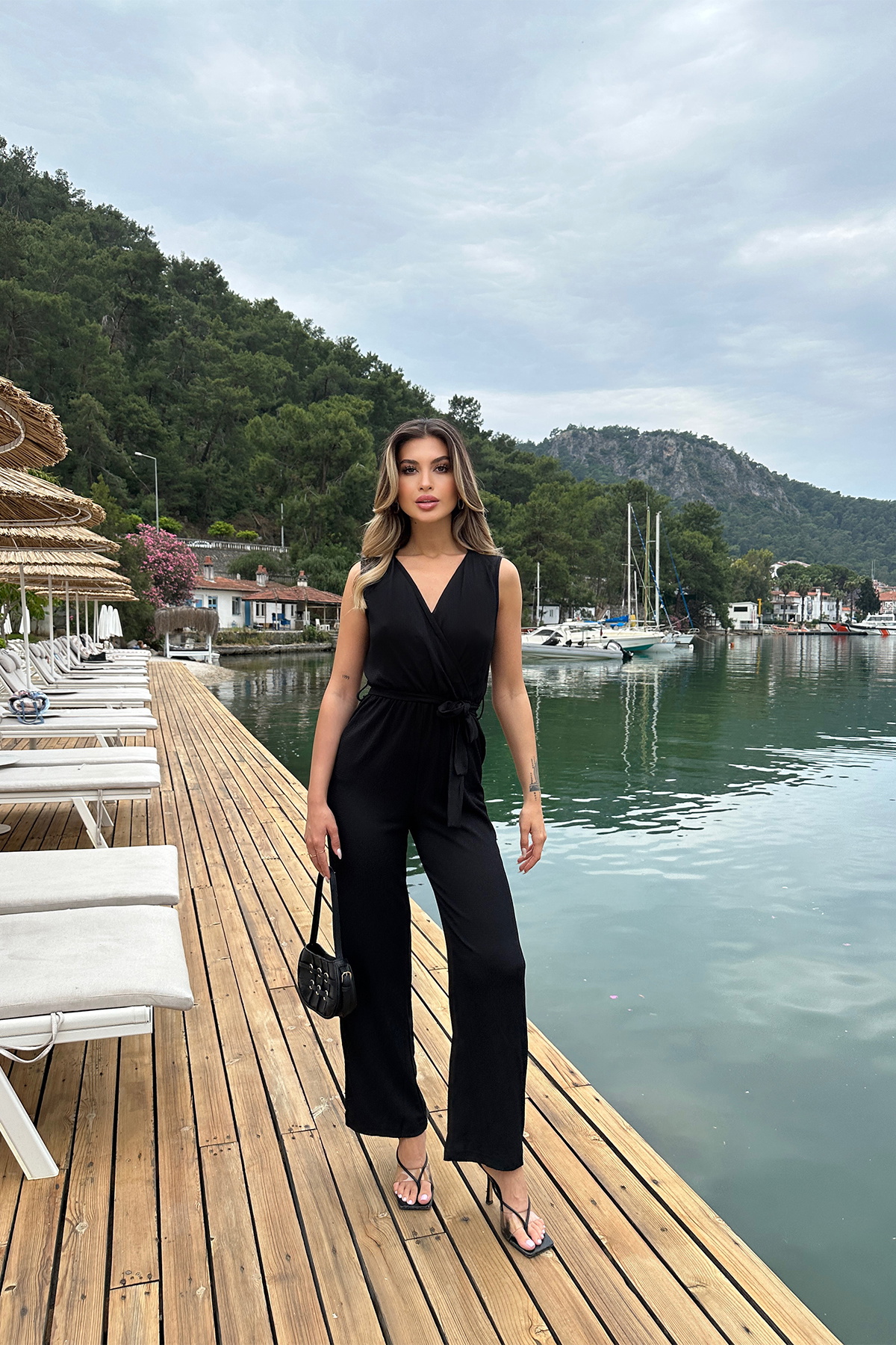 Black Belt Detail V Collar Overalls in this photo is S size.