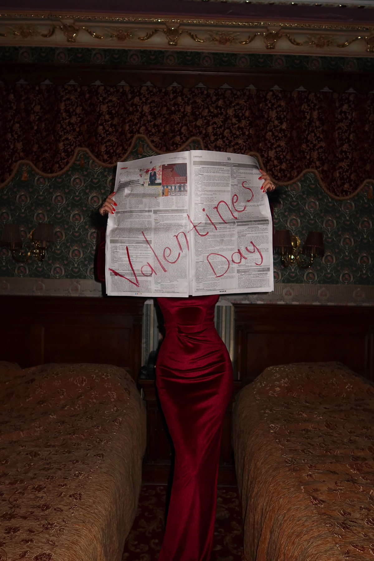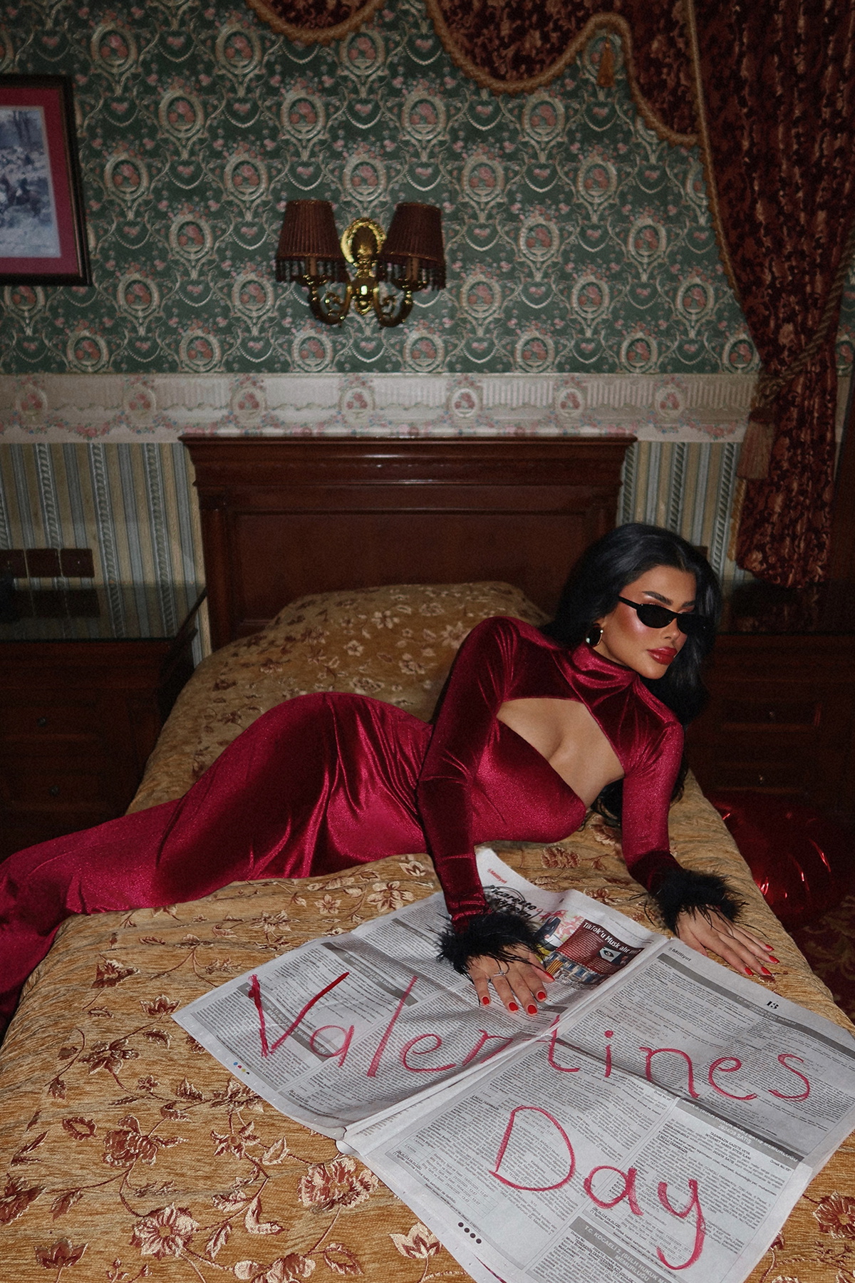 Bordo Patrizio Otriş Detay Kadife Elbise