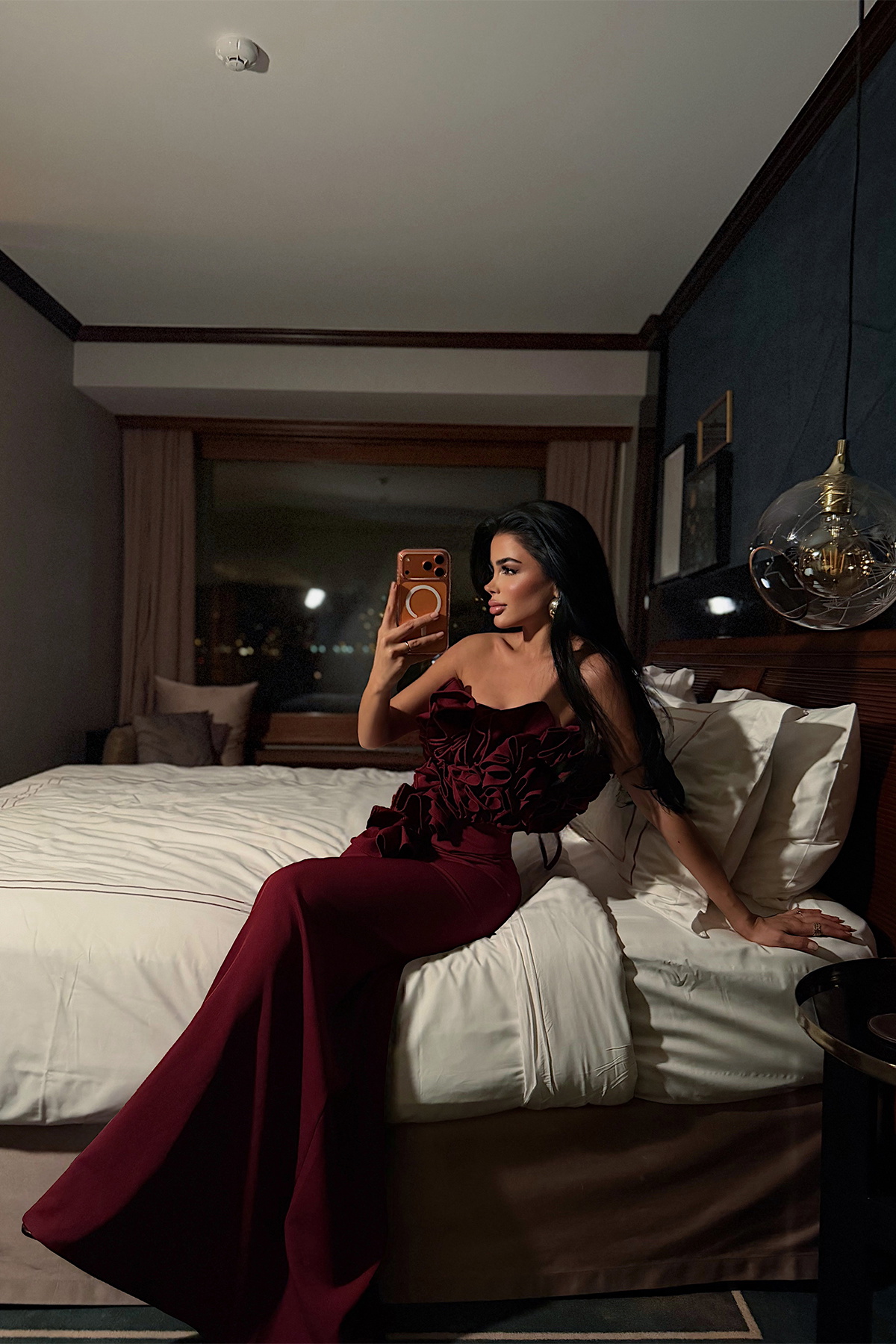 Fırfır detaylı crop üst ve yüksek bel etekten oluşan takım, heykelsi formu ve dikkat çekici tasarımıyla güçlü bir siluet sunar. Doku ve hacim kazandıran üst parça iddialı bir görünüm yaratırken, sade etek tasarımı takımı dengeler. Özel davetler ve şık kombinler için modern ve çarpıcı bir tercihtir.