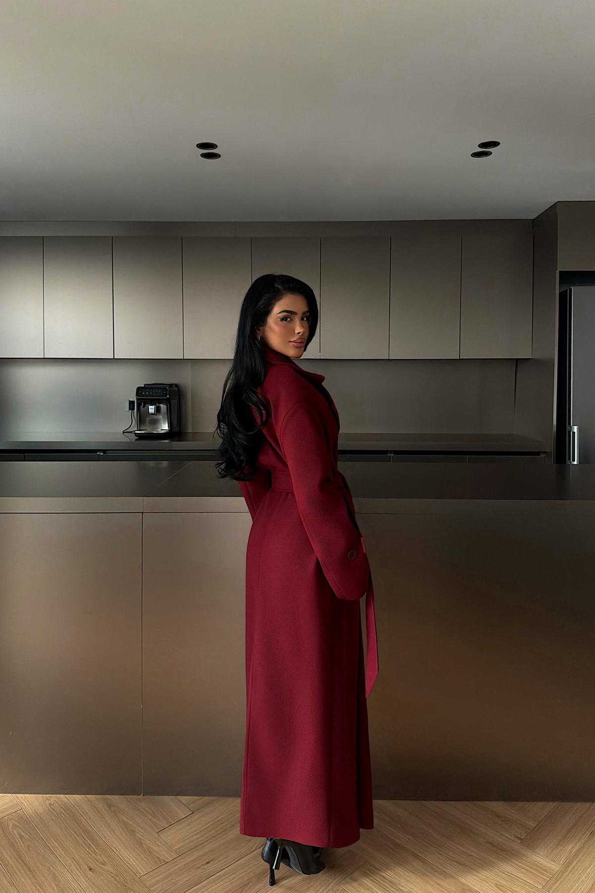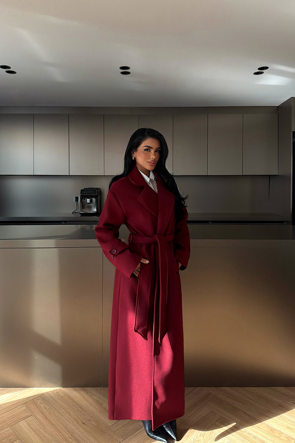 Düz kesimi ve uzun boy formuyla öne çıkan kaban, tok dokulu yapısı sayesinde güçlü ve şık bir siluet sunar. Klasik yaka detayı zamansız bir duruş kazandırırken, rahat kesimi şehir stilinde hem günlük hem de şık kombinlerle kolayca uyum sağlar.
