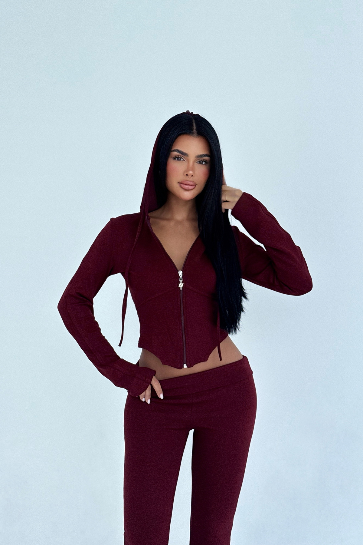 Bordo Pointelle Tracksuit Takım – Rahatlığın ve Şıklığın Mükemmel Uyumu