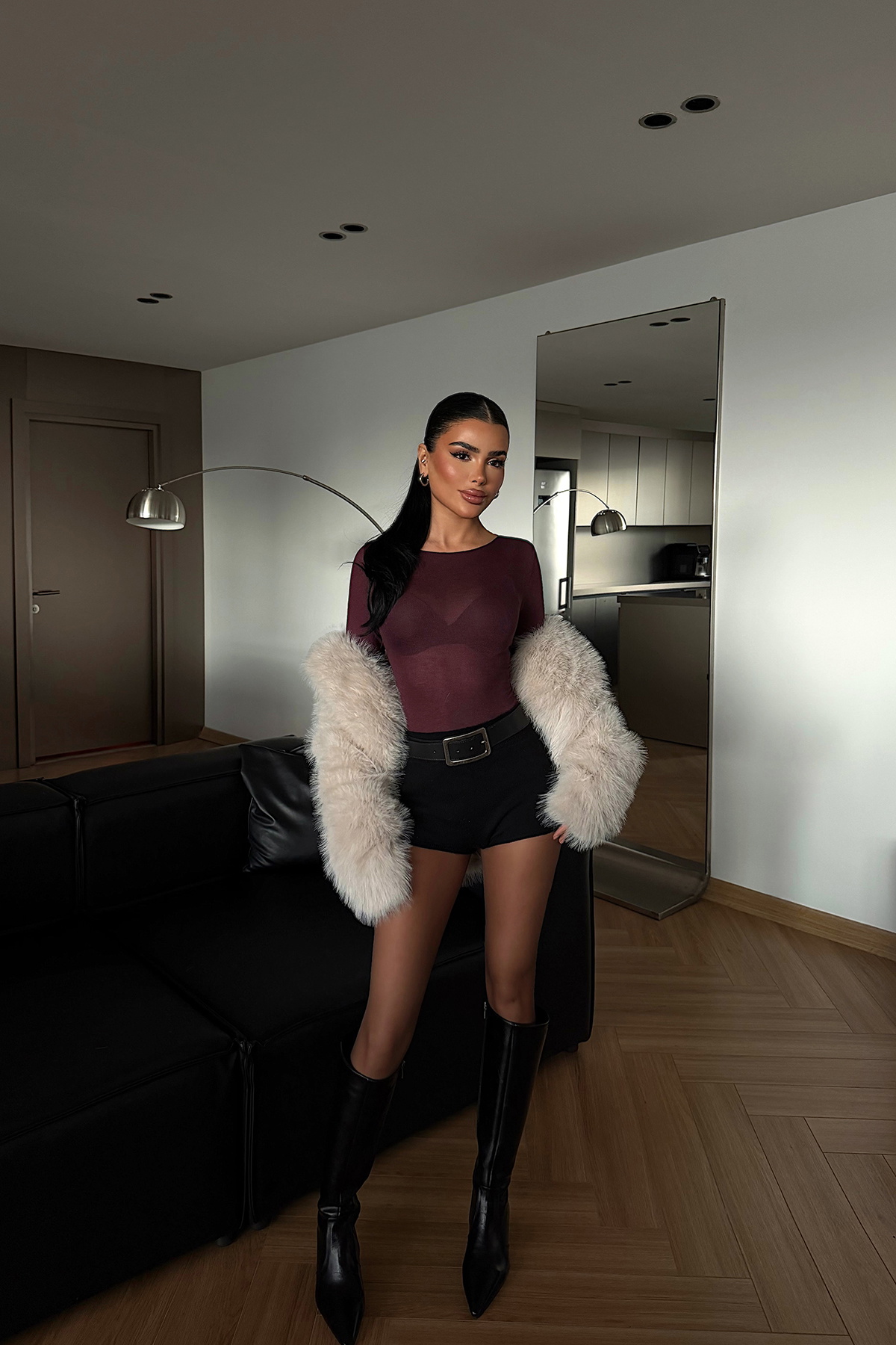 Yarı transparan yapısı ve vücuda oturan formuyla öne çıkan uzun kollu üst, sade ve modern bir görünüm sunar. İnce dokusu sayesinde hafif bir duruş sağlarken, minimal tasarımıyla günlük kombinlerden şık görünümlere kadar kolayca uyum sağlar.