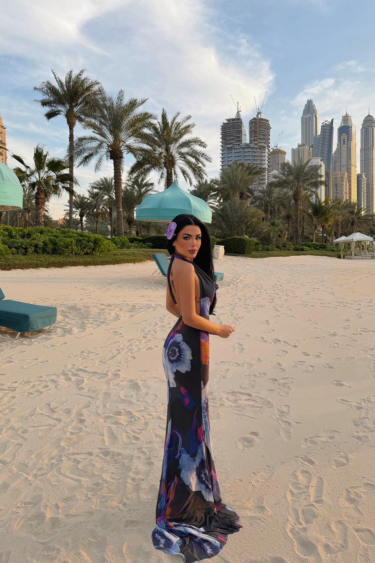 Albella Desenli Uzun Elbise ATE-4811