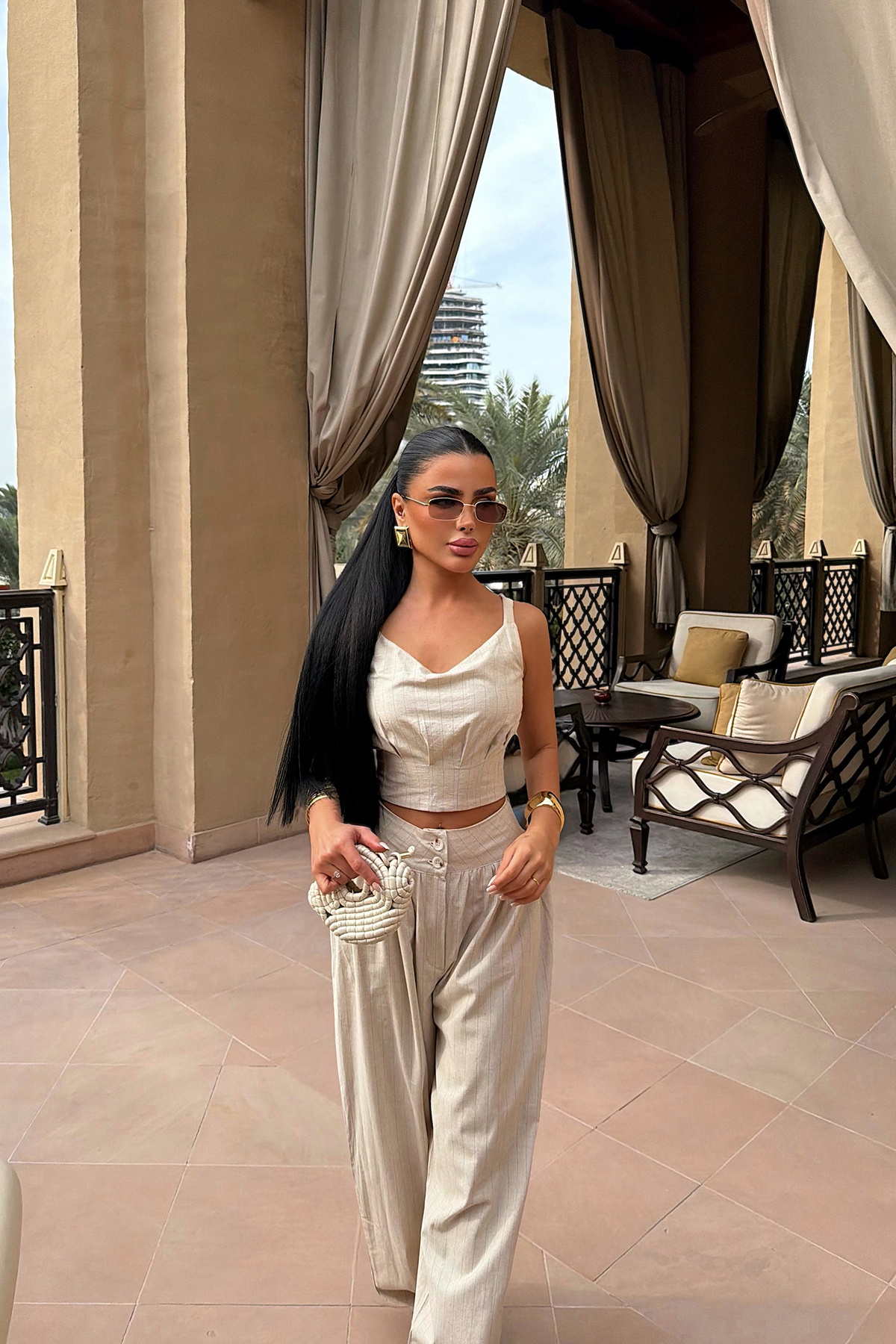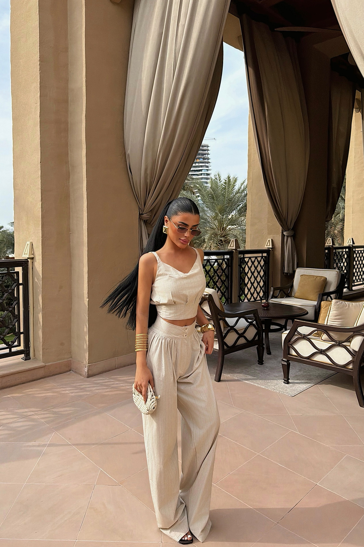 Minimal çizgileri ve feminen duruşuyla öne çıkan bu büstiyer pantolon takım, modern stilin en şık yorumlarından biridir. Vücuda oturan büstiyer üst formu bel hattını zarif şekilde vurgularken, yüksek bel geniş paça pantolon rahat ve akıcı bir siluet oluşturur. İnce dokulu kumaşı sayesinde hem hafif hem de konforlu bir kullanım sunar.