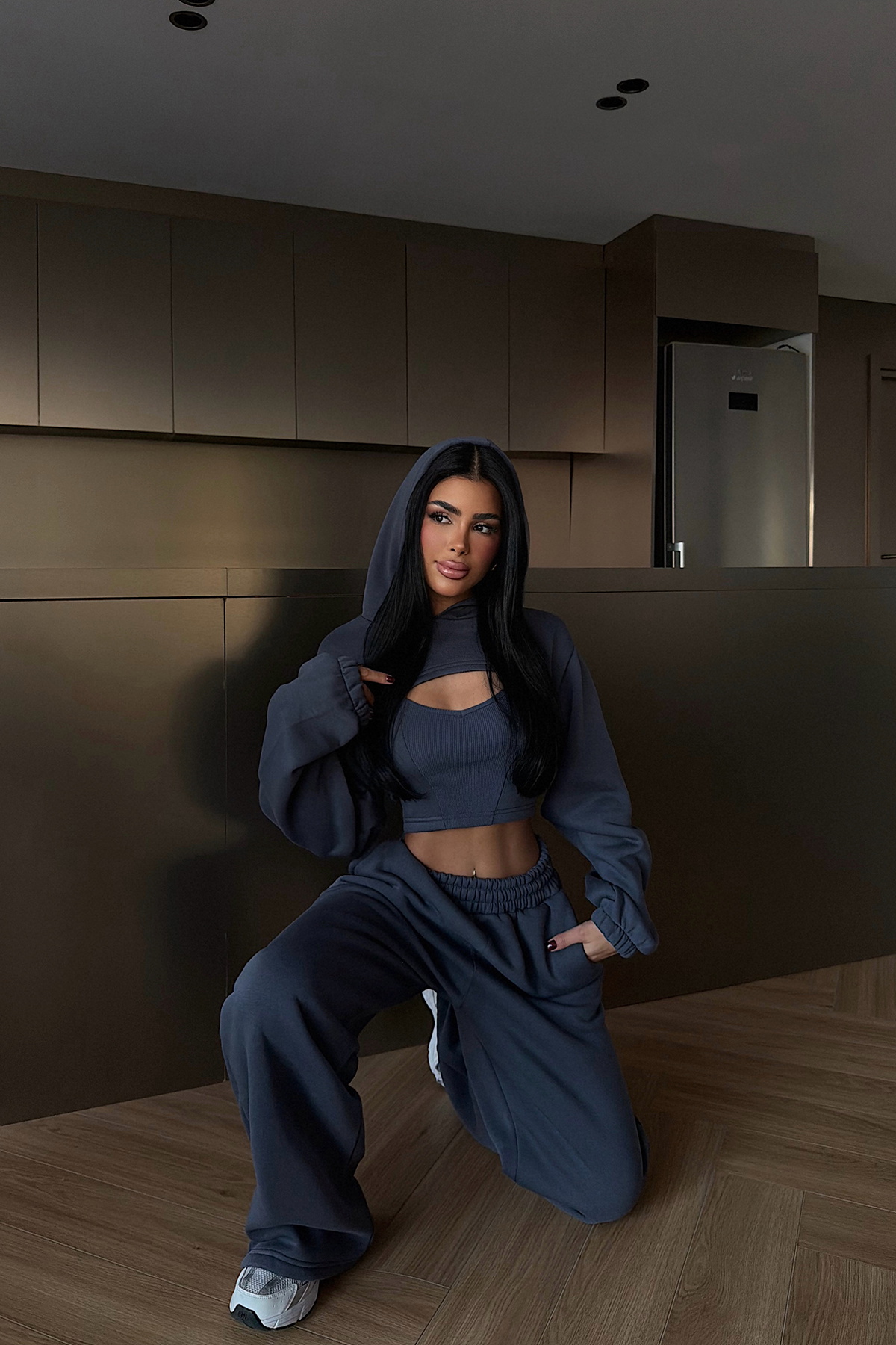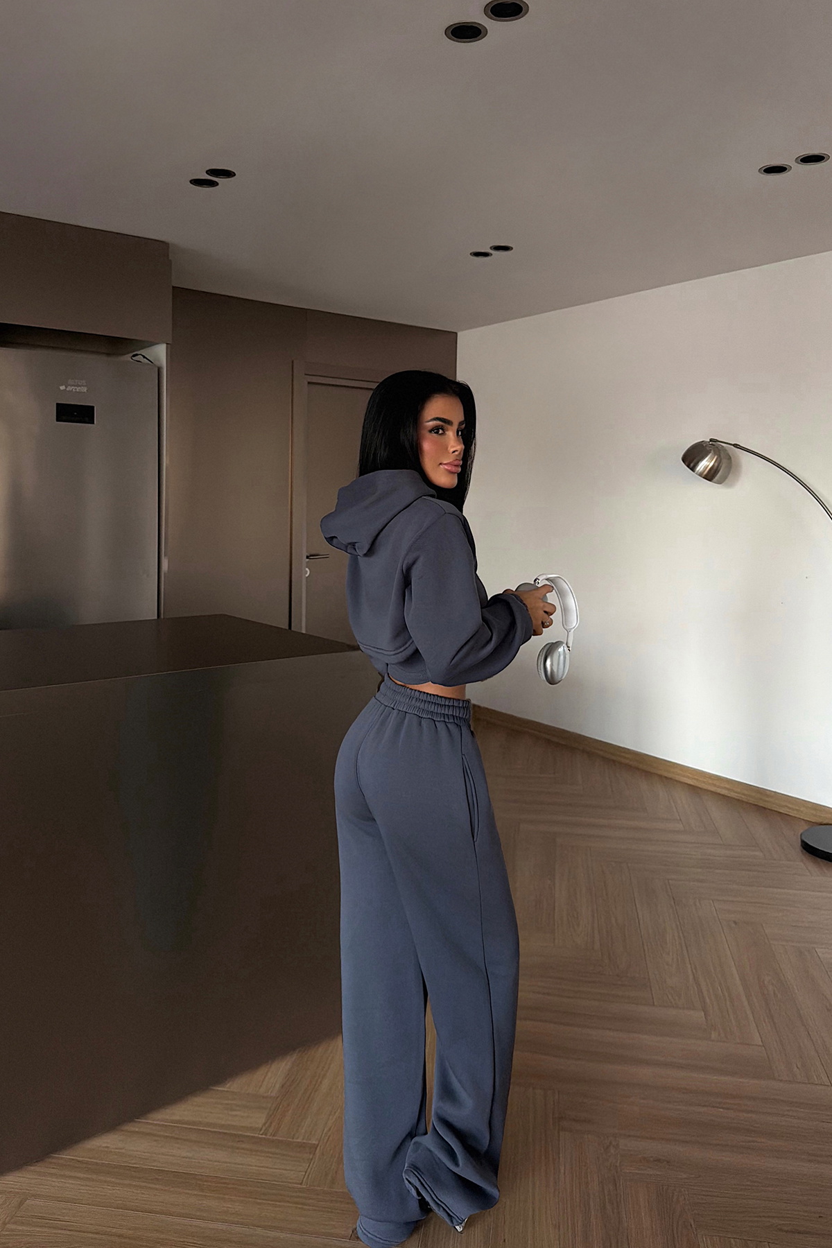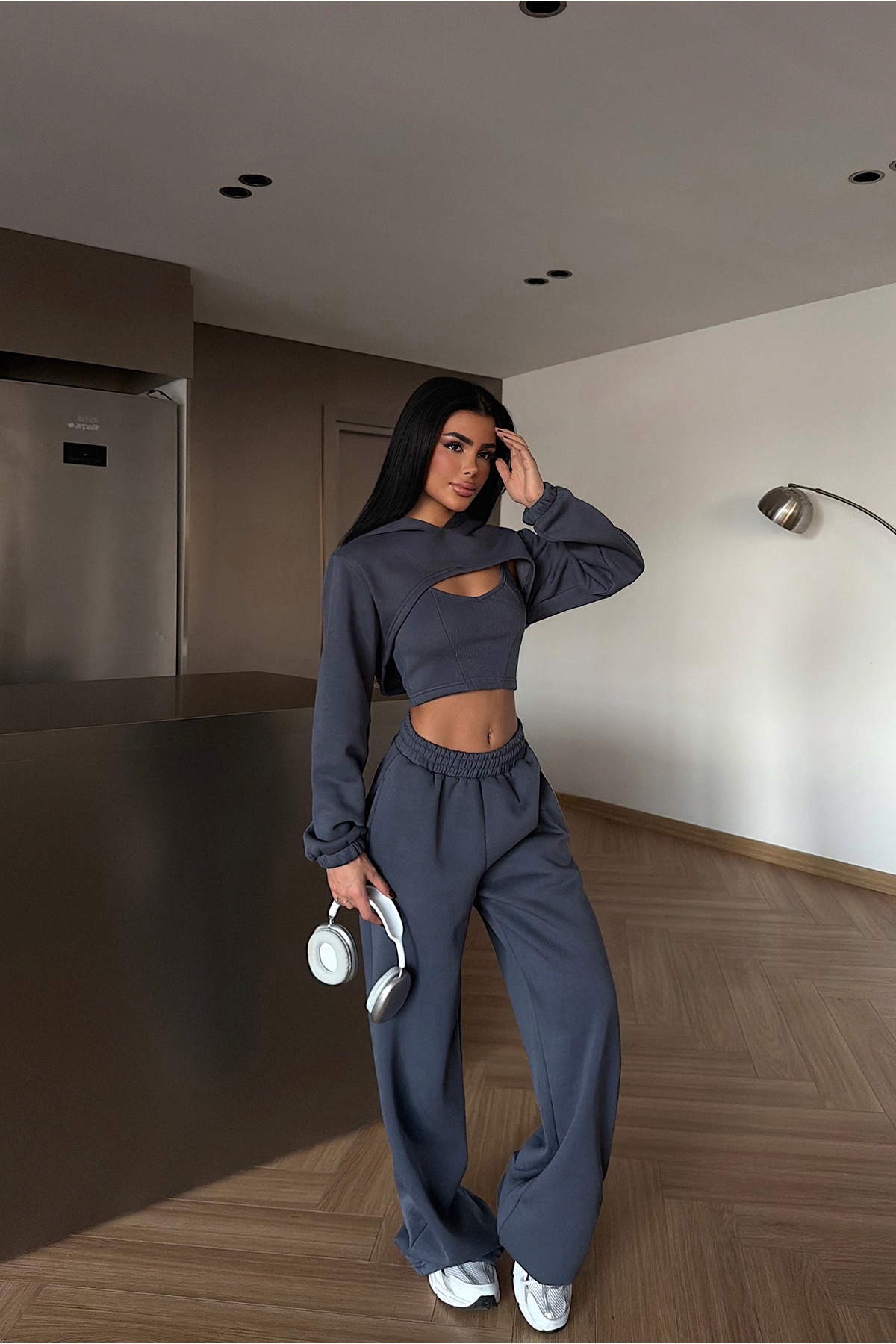 Zarif füme tonuyla nötr ve sofistike bir duruş yakalayan Füme Corsica Eşofman Takımı, katman detaylı tasarımıyla dikkat çeker. Bolero üst parçası, takım bütünlüğünü korurken kombinlere şıklık katar; alt parça sade ve uyumlu kesimiyle dengeli bir görünüm sağlar.