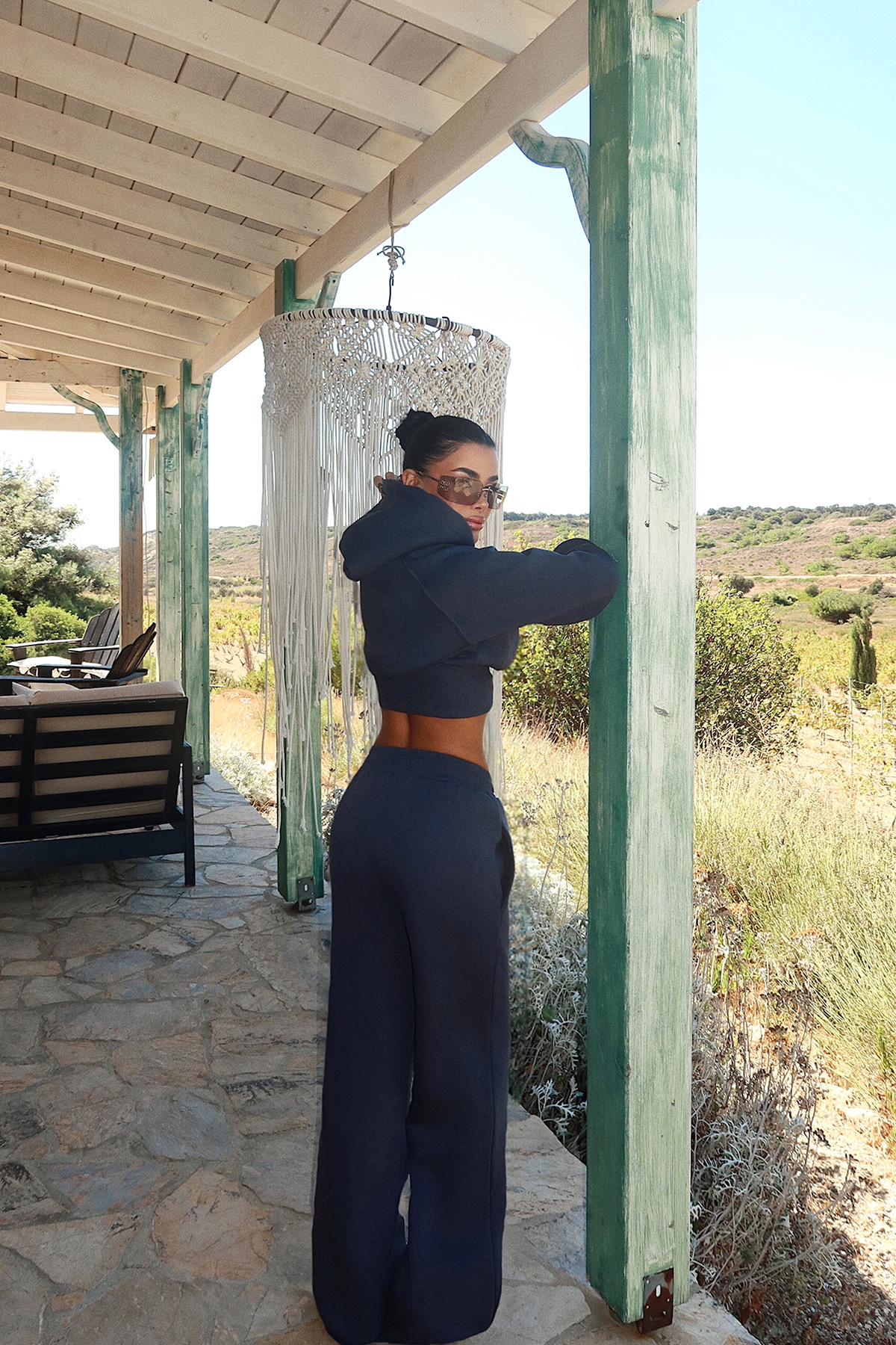 Derin füme tonu ile öne çıkan Scarf kapşonlu eşofman takımı, rahat kesimi ve şık tasarımıyla günlük kombinlerde sofistike bir stil sunar. Kapşon detayı spor bir hava katarken, yumuşak dokusu gün boyu konfor sağlar. Hem şehirde hem de evde şıklığınızı tamamlayacak çok yönlü ve modern bir parçadır.