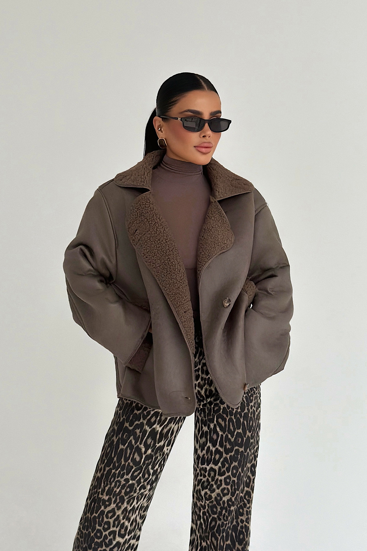 Şık füme tonuyla dikkat çeken bu ceket, yakadaki ve kol uçlarındaki kürk detaylarıyla klasik silueti modern bir dokunuşla birleştiriyor. Hafif oturan kesimi sayesinde silueti zarif tamamlar ve şehir içi kullanıma uygundur. İç astarlı yapısı soğuk havalarda ekstra konfor sağlarken, nötr rengi farklı kombinlerle kolayca uyum sağlar.