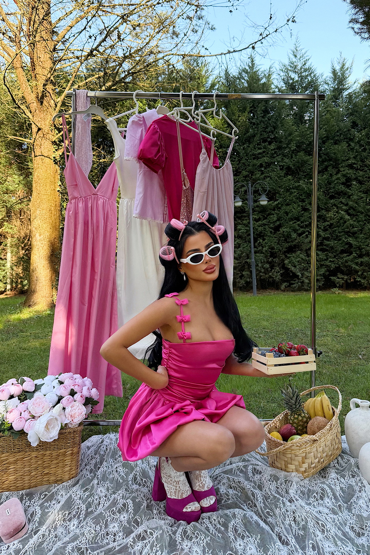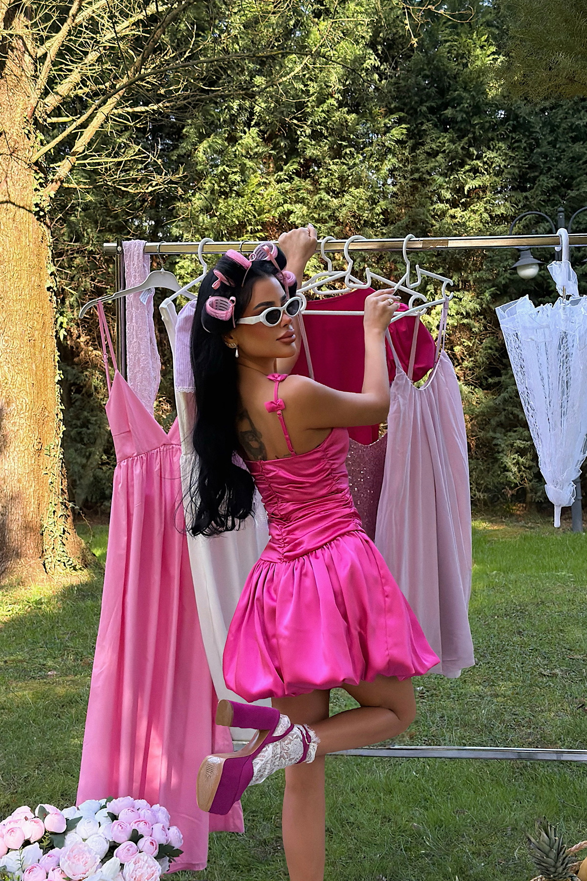 Fuşya Cecilia Askısı Fiyonk Detaylı Mini Balon Elbise