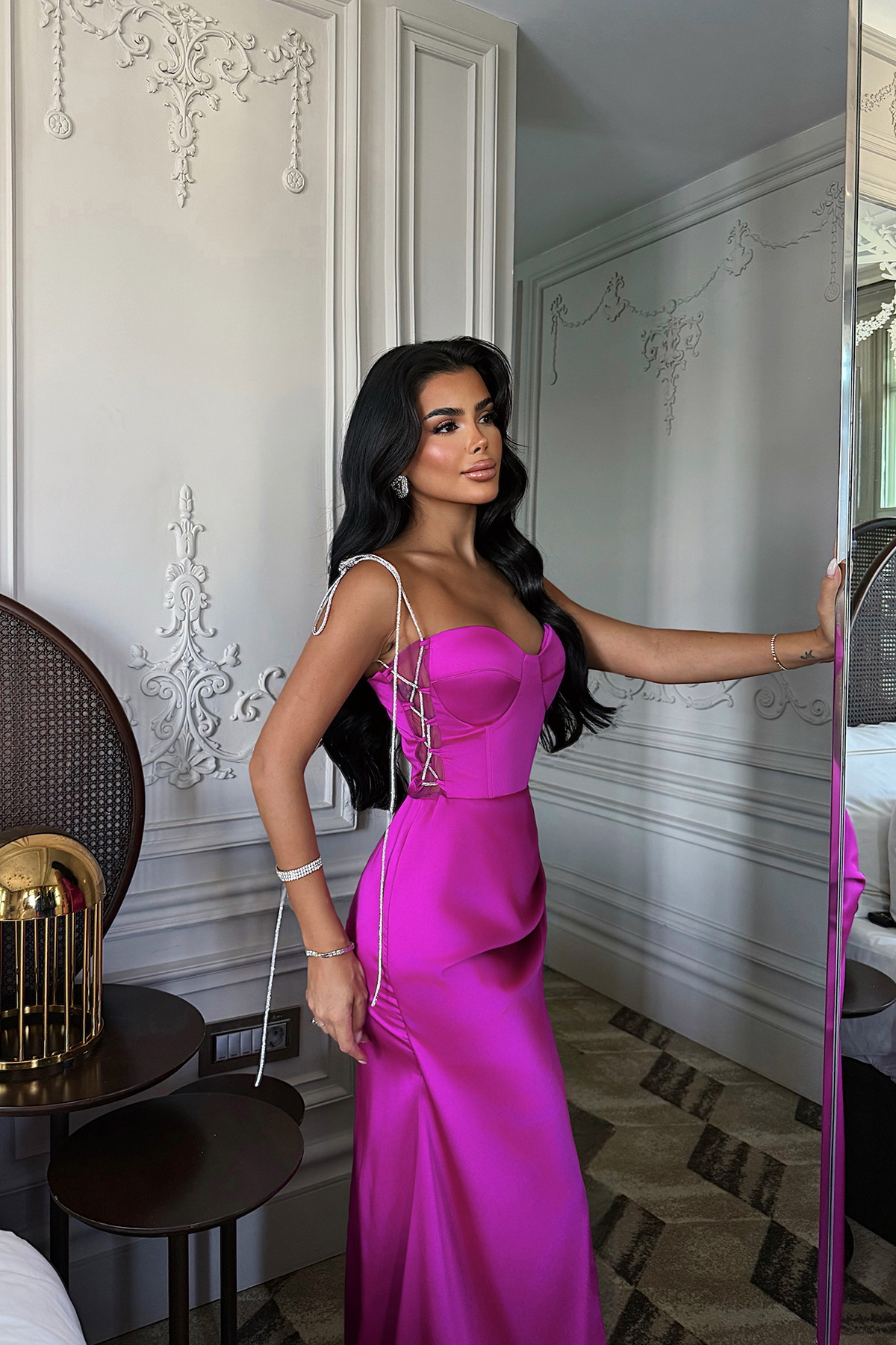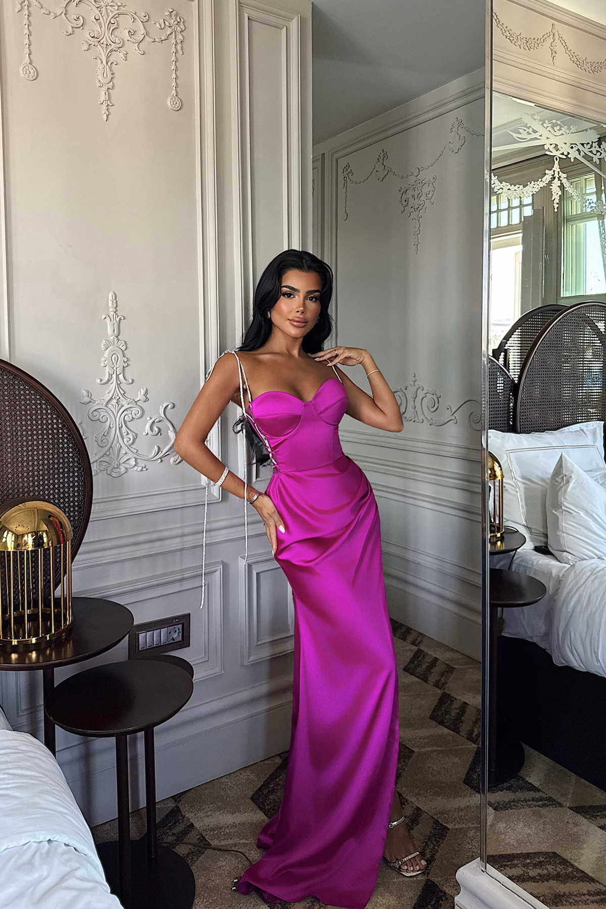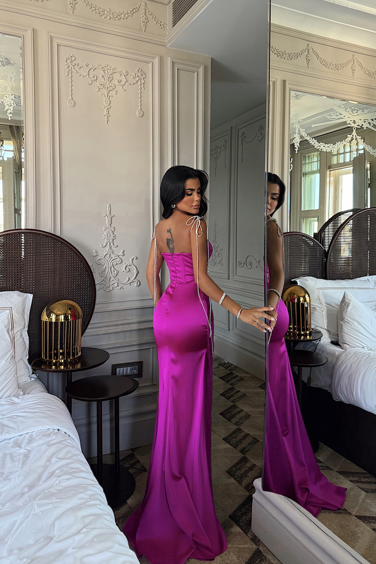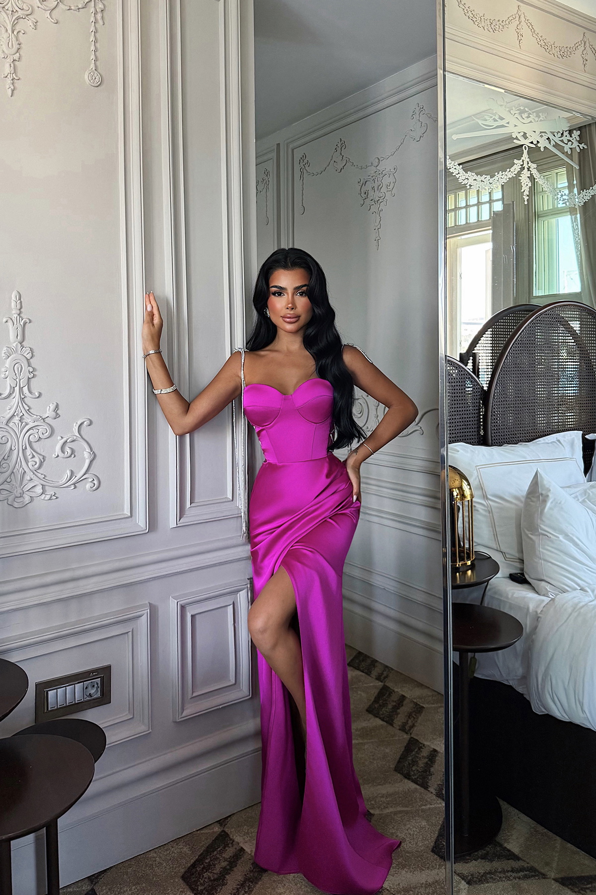 Fuşya Soliana Yırtmaç Detaylı Uzun Abiye – Cesur ve Zarif
