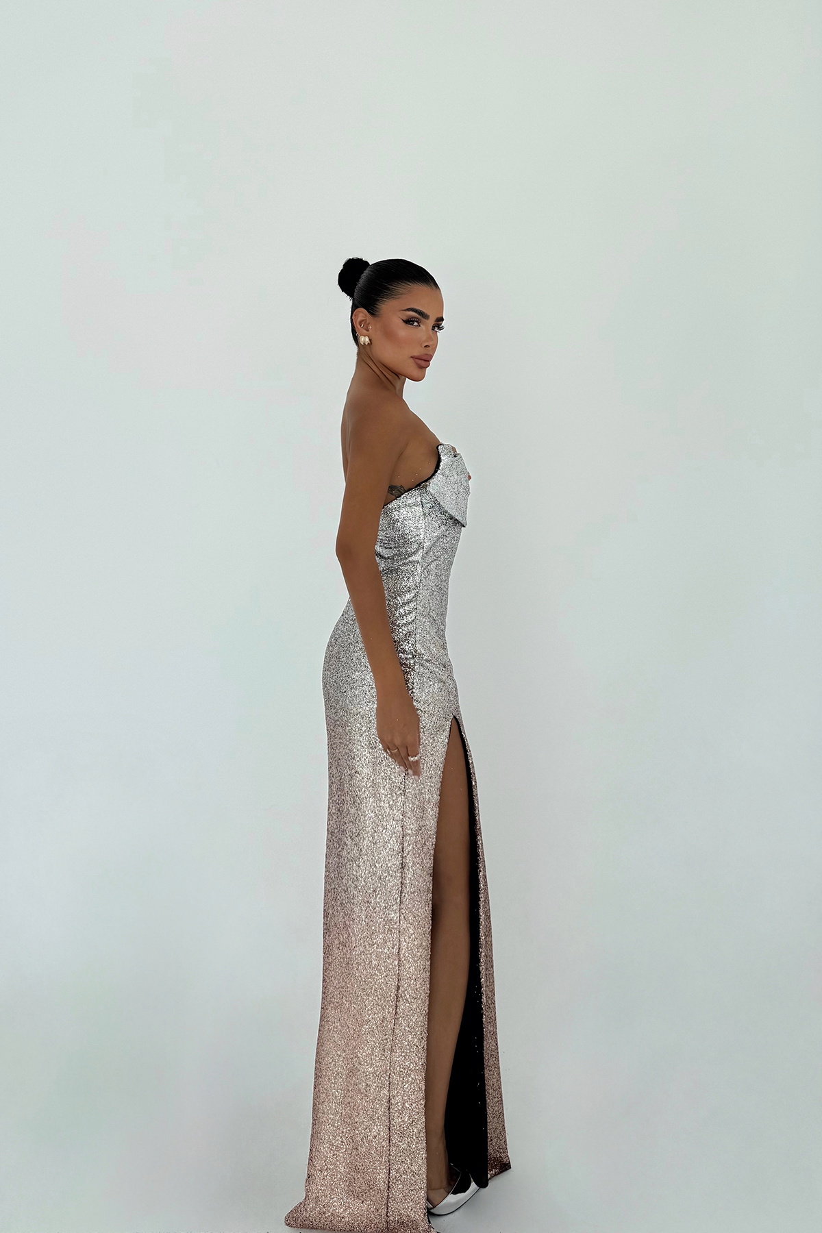 Gold Toulon Uzun Yırtmaçlı Elbise