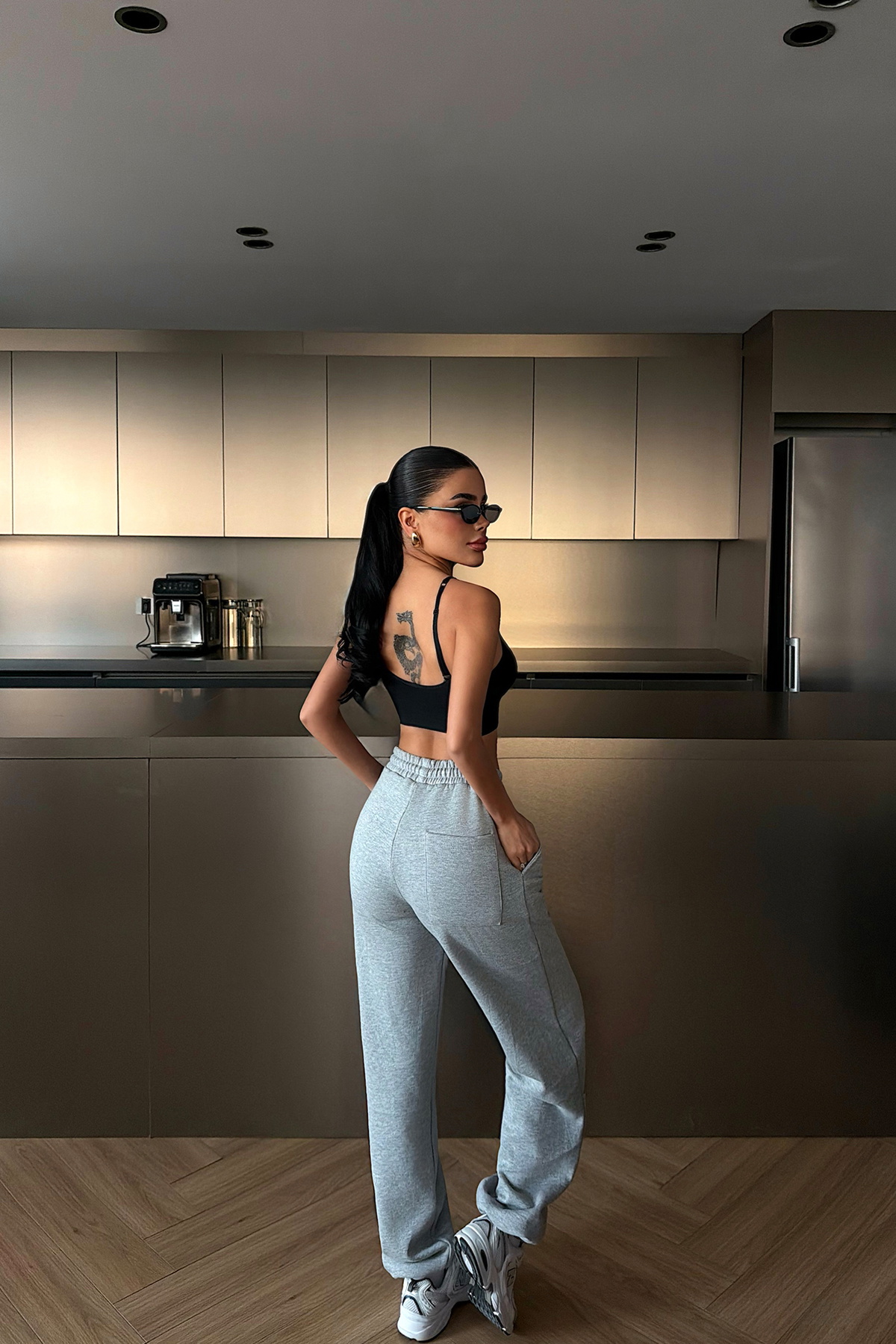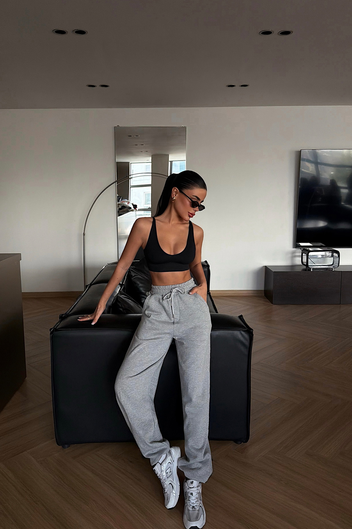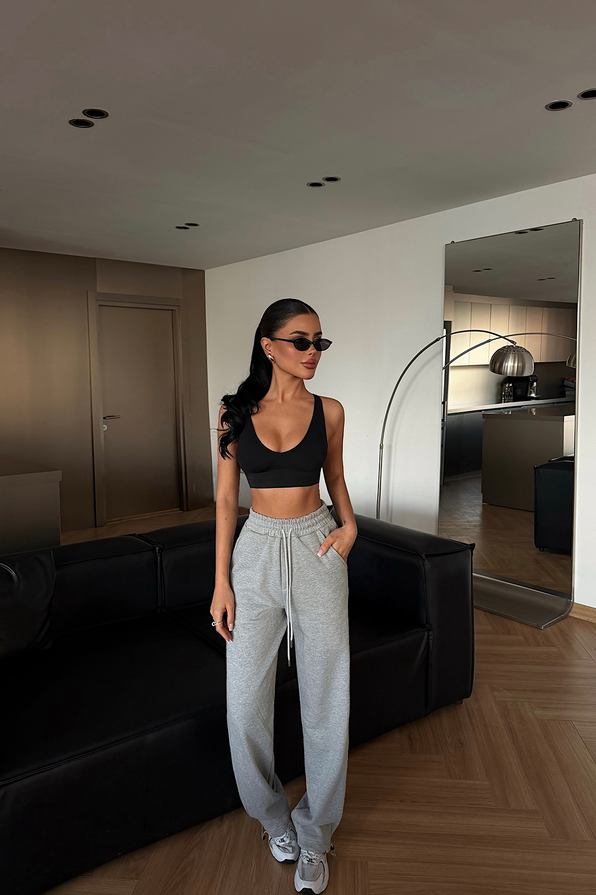 3 iplik kumaştan üretilen bu eşofman altı, tok duruşu ve yumuşak dokusuyla gün boyu konfor sunar. Yüksek bel ve beli bağcıklı tasarımı sayesinde vücuda uyum sağlar ve rahat bir kullanım imkânı sunar. Geniş paça formu modern ve dengeli bir siluet oluştururken, günlük kombinlere sportif bir hava katar.