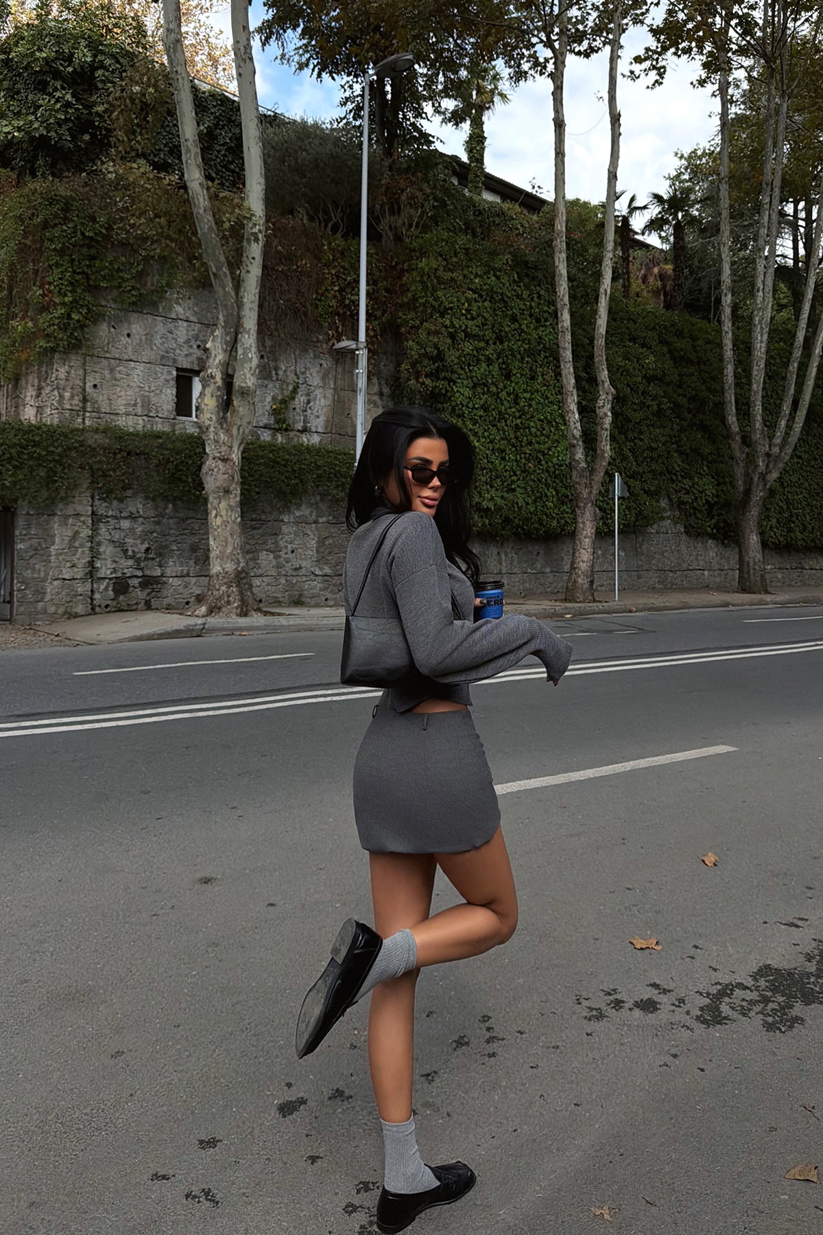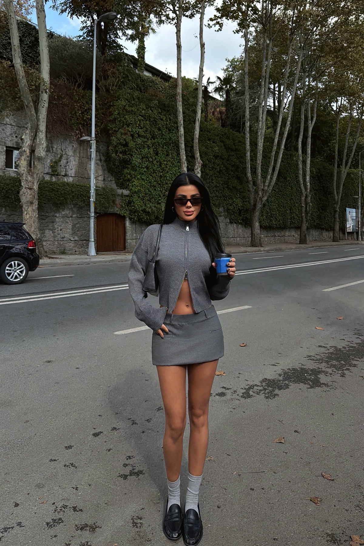 Gri Balboa Çift Fermuarlı Triko Hırka ATE-3892