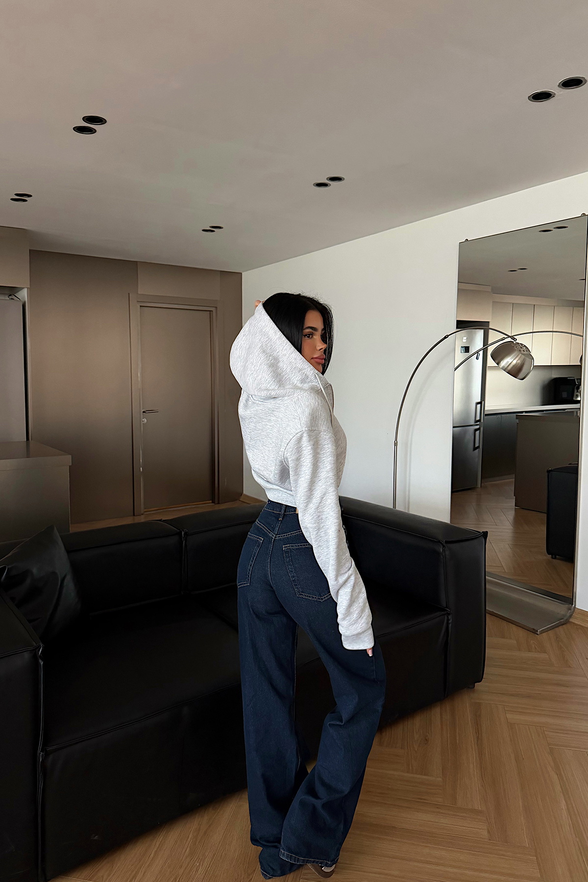 Gri Caiden Crop Hırka