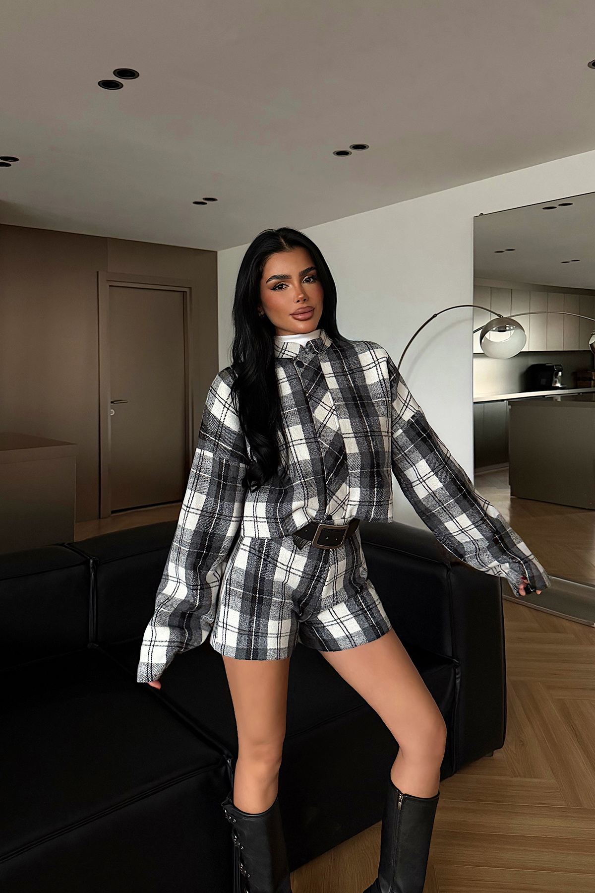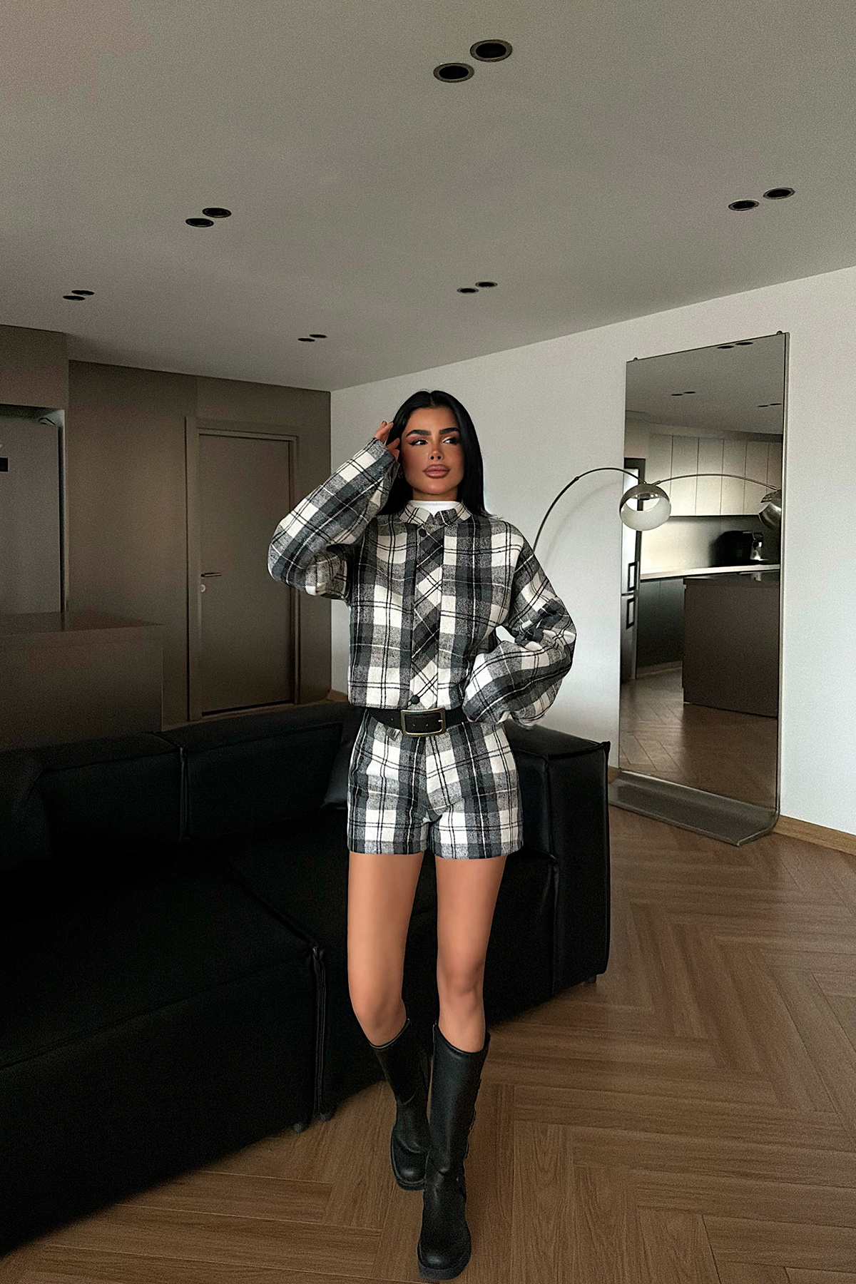Modern ekose deseniyle dikkat çeken ceket ve şort takımı, dinamik ve şehirli bir stil sunar. Rahat kesimi ve uyumlu formu sayesinde hem şık hem konforlu bir kullanım sağlar. Ceket üzerindeki klasik ekose dokusu zamansız bir görünüm kazandırırken, şort parça takıma enerjik bir hava katar.