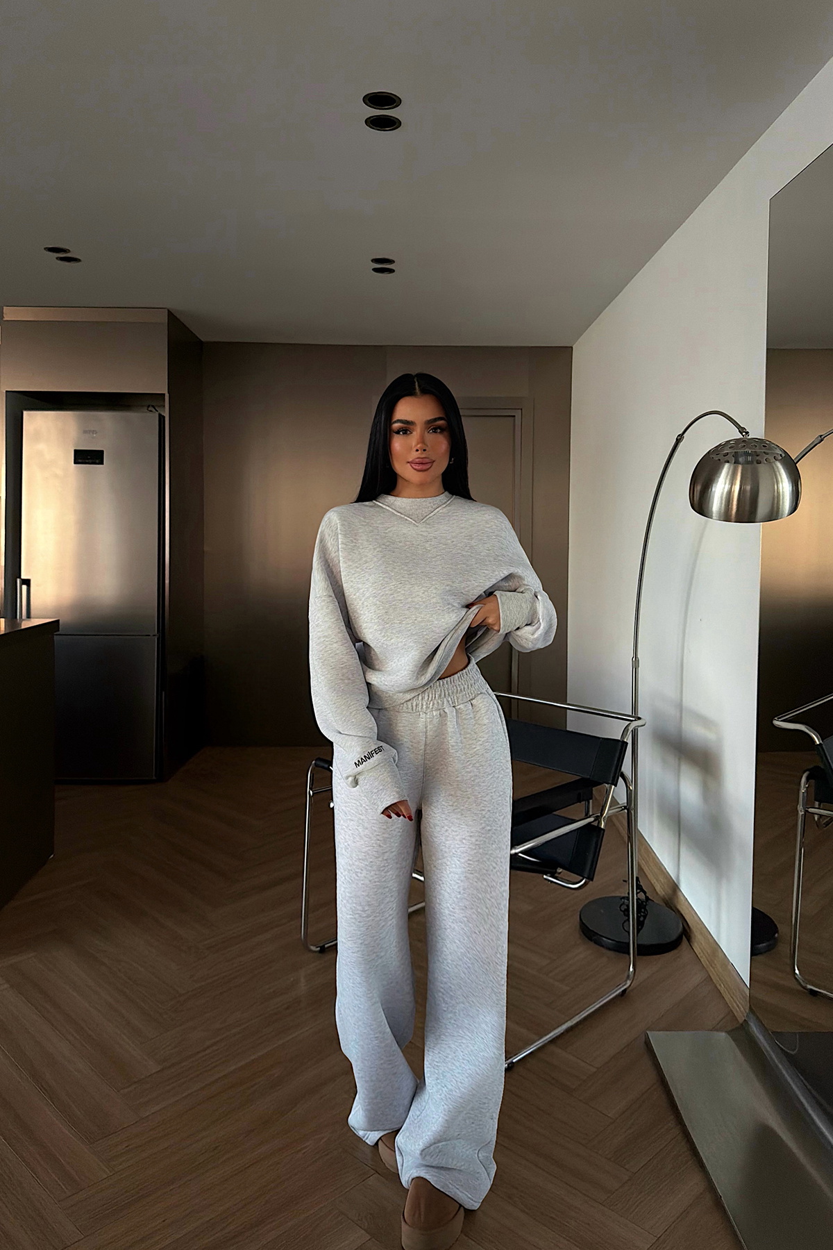 Sade tasarımı ve yumuşak dokulu kumaşıyla temiz bir siluet sunar. Üst parça rahat kesimli formu ve minimal detaylarıyla öne çıkarken, alt parça düz paça yapısı ve dengeli kalıbıyla takımı tamamlar. Kumaşı esnek ve konforlu; dikişleri düzgün ve kalıbı rahattır.