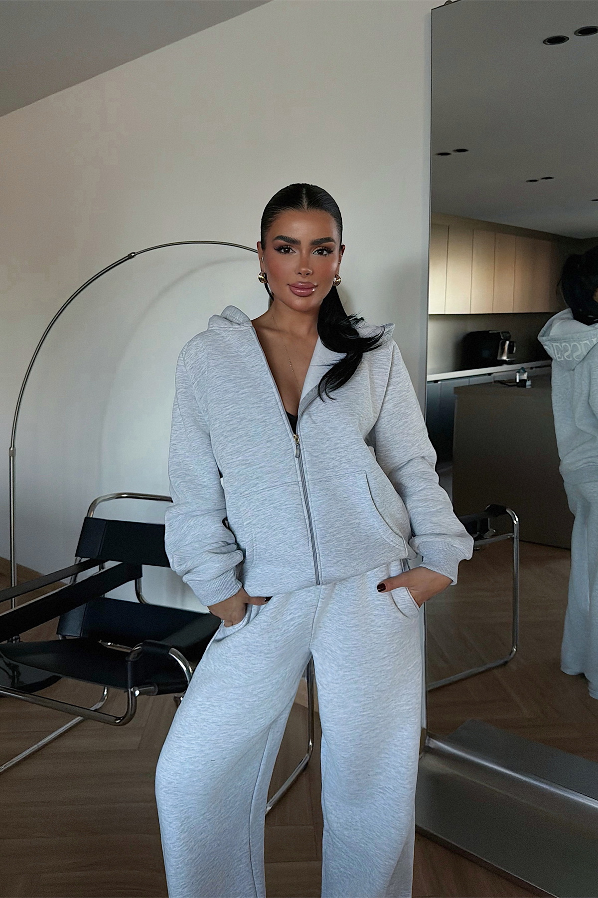 Gri Bonny Fermuarlı Eşofman Takım