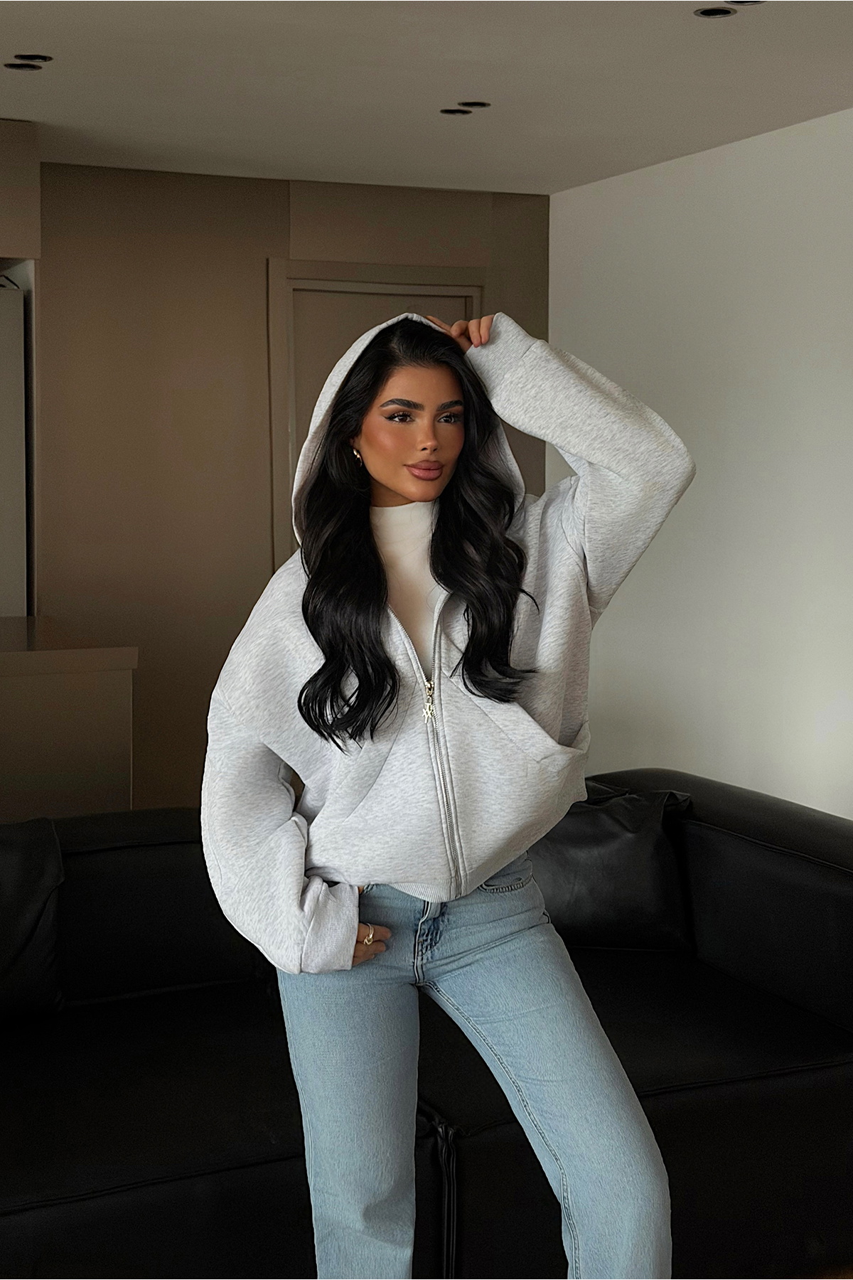 Fermuarlı tasarımı ve yumuşak dokulu triko yapısıyla öne çıkan hırka, rahat kesimi sayesinde günlük kullanım için ideal bir parça sunar. Minimal duruşu ve pratik formu ile şehir stilinde konforlu ve modern kombinler oluşturur.