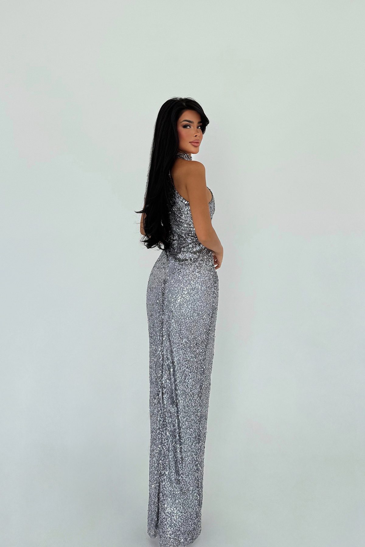 Gri Shion Payetli Elbise – Zamansız Işıltı