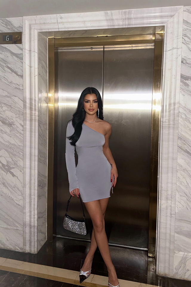 Gri Tek Kol Mini Elbise
