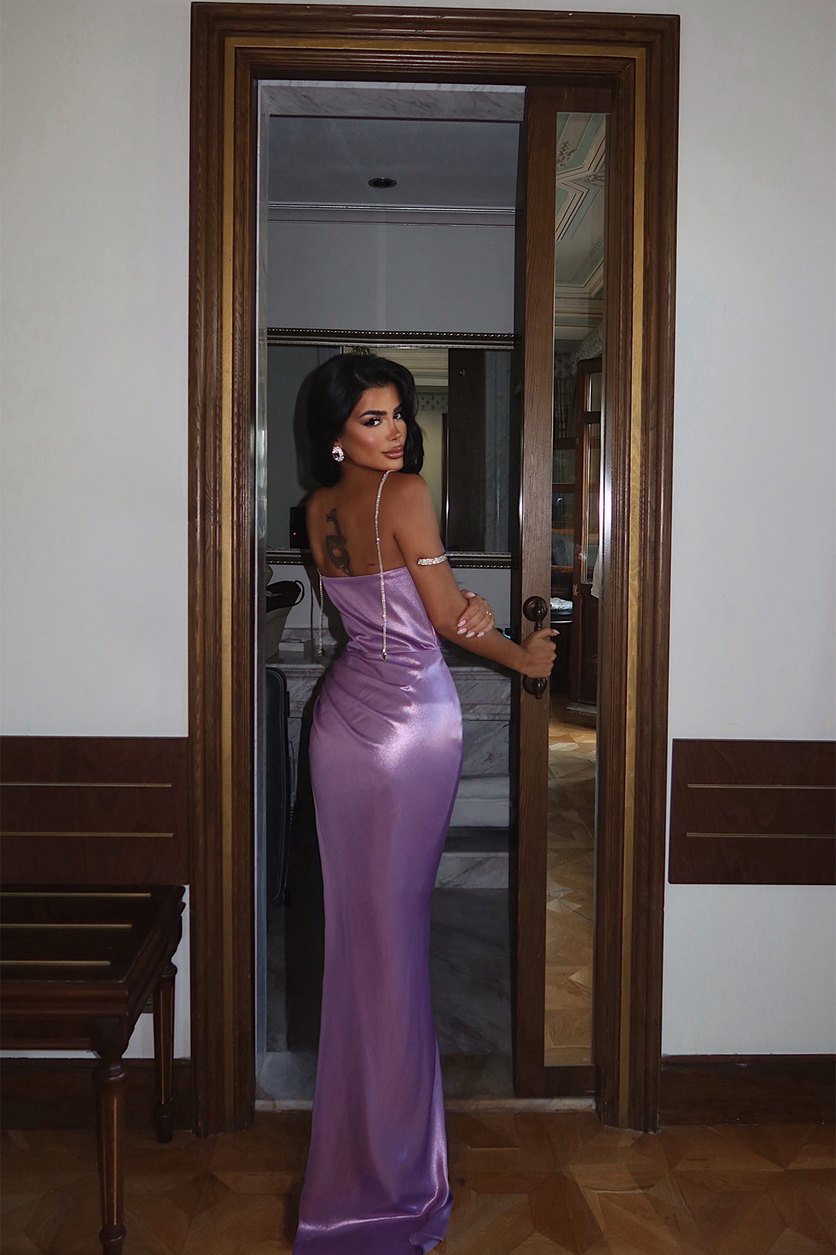 Averie taş askılı abiye elbise, şık taş detaylarıyla özel davetlerde göz alıcı bir şıklık sunar. Askılı tasarımı ve akıcı kumaşı feminen bir duruş sağlar. Hem konforlu hem de etkileyici bir kullanım imkanı ile stilinizi tamamlar.