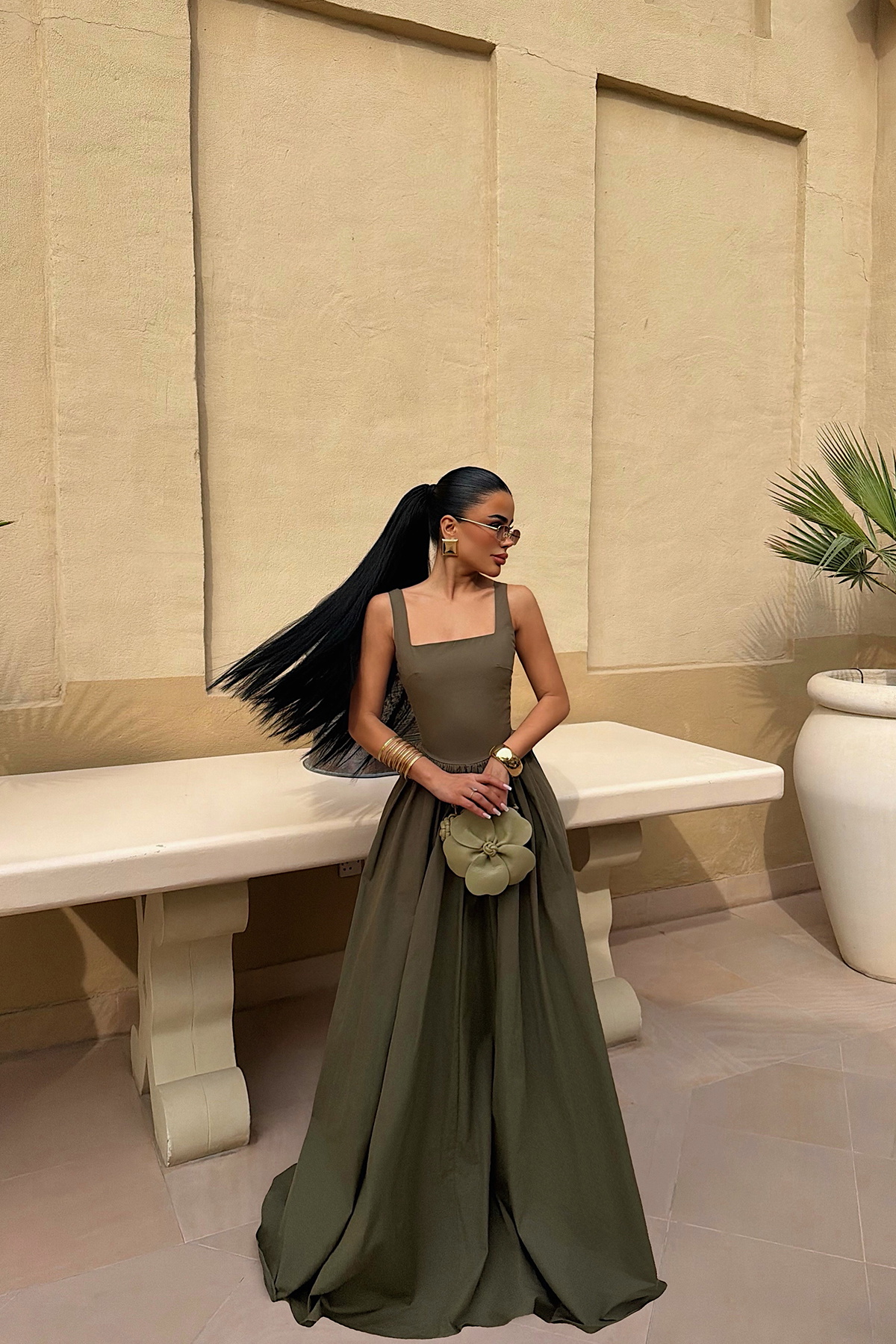 Haki Boundless Uzun Elbise