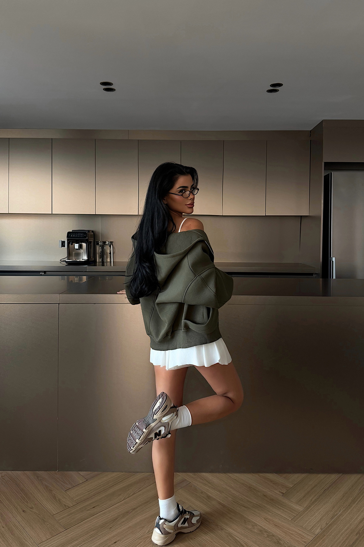 Fermuarlı tasarımı ve yumuşak dokulu triko yapısıyla öne çıkan hırka, rahat kesimi sayesinde günlük kullanım için ideal bir parça sunar. Minimal duruşu ve pratik formu ile şehir stilinde konforlu ve modern kombinler oluşturur.