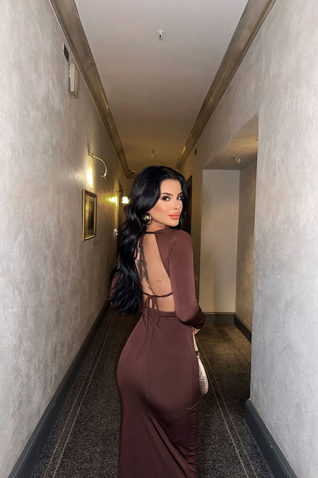 İndigo Sırtı Bağlamalı Uzun Elbise