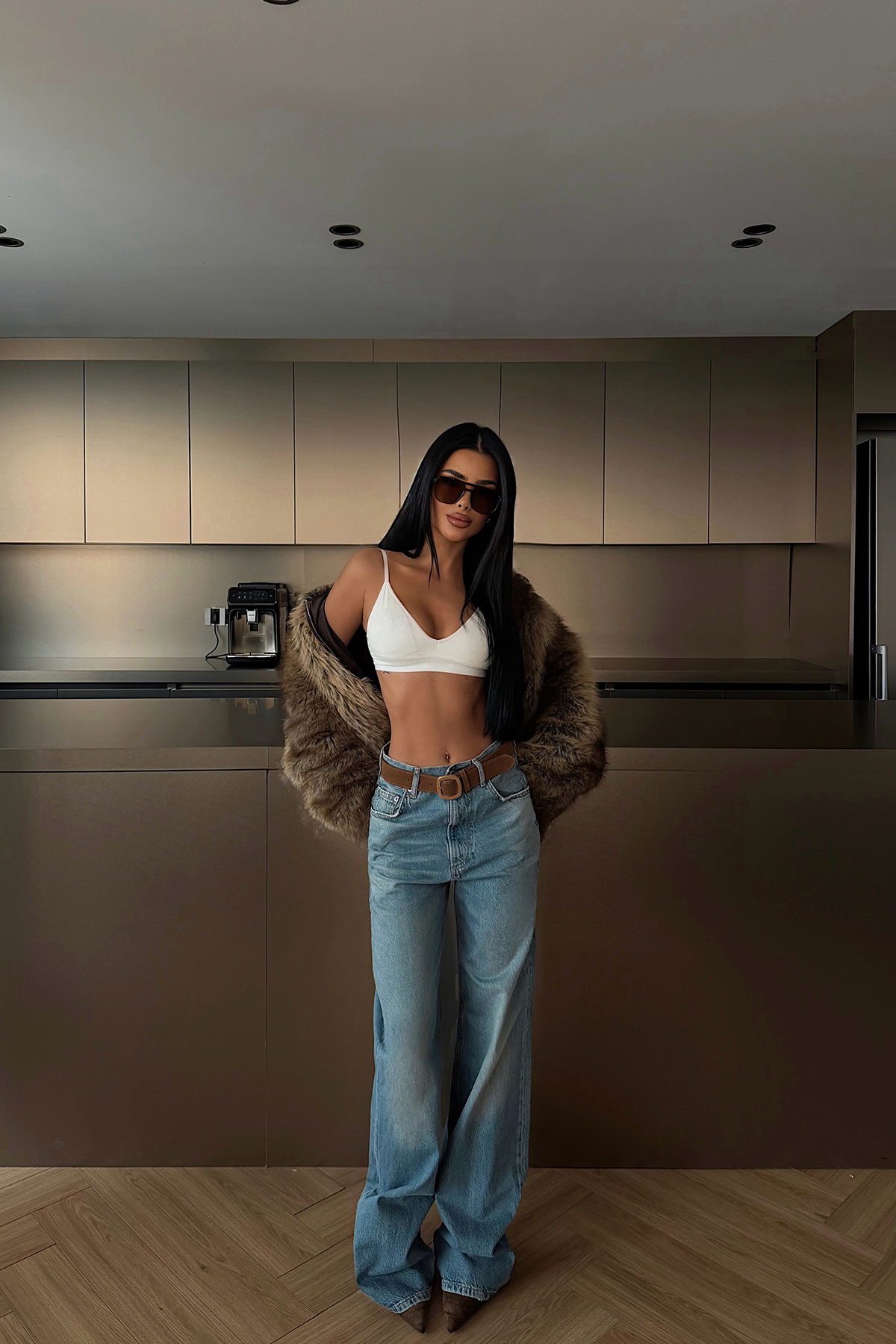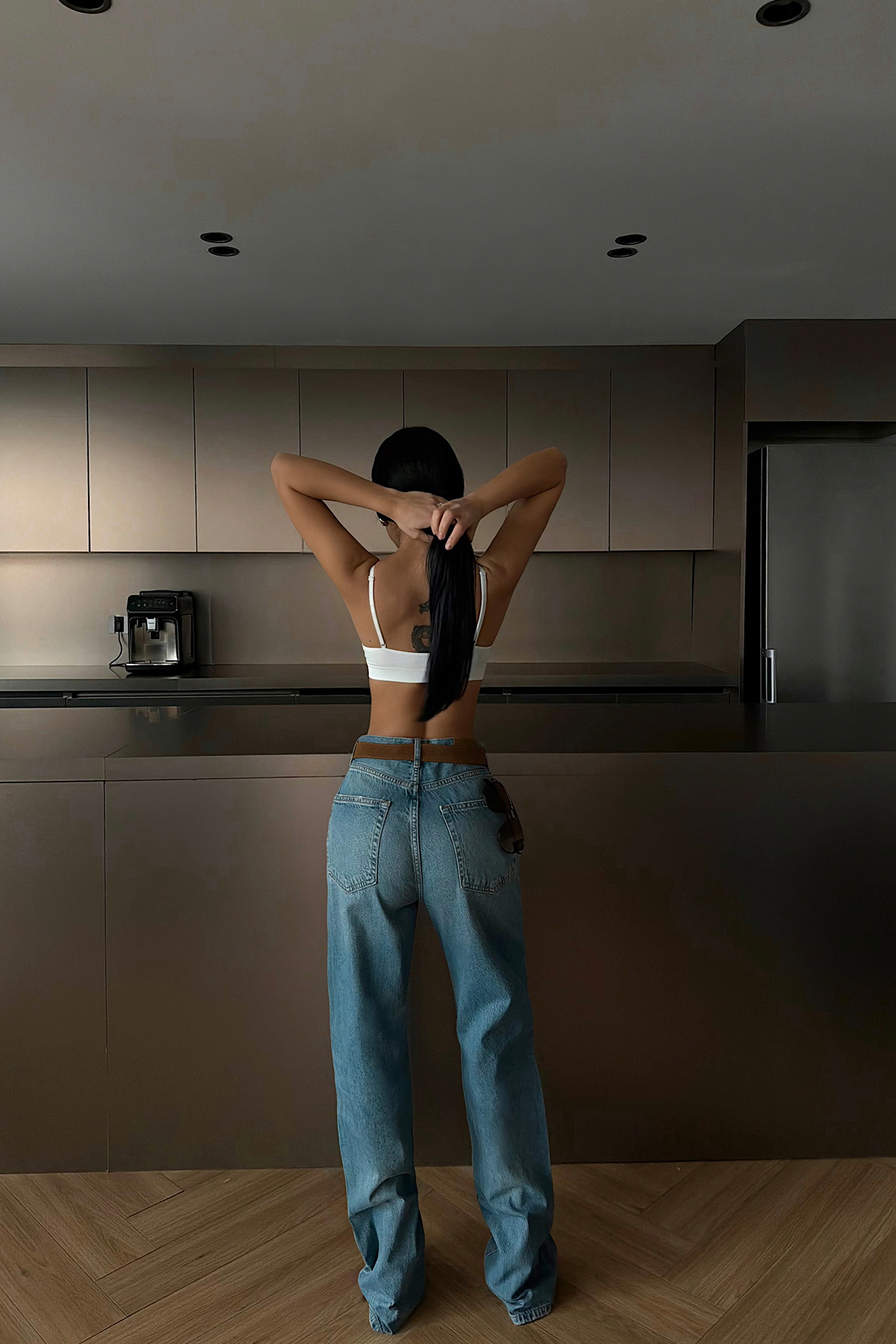 Düz paça kesimiyle öne çıkan yüksek bel jean pantolon, rahat kalıbı sayesinde gün boyu konfor sunar. Belden oturan formu vücut hatlarını dengeli gösterirken, zamansız tasarımıyla her stile kolayca uyum sağlar.