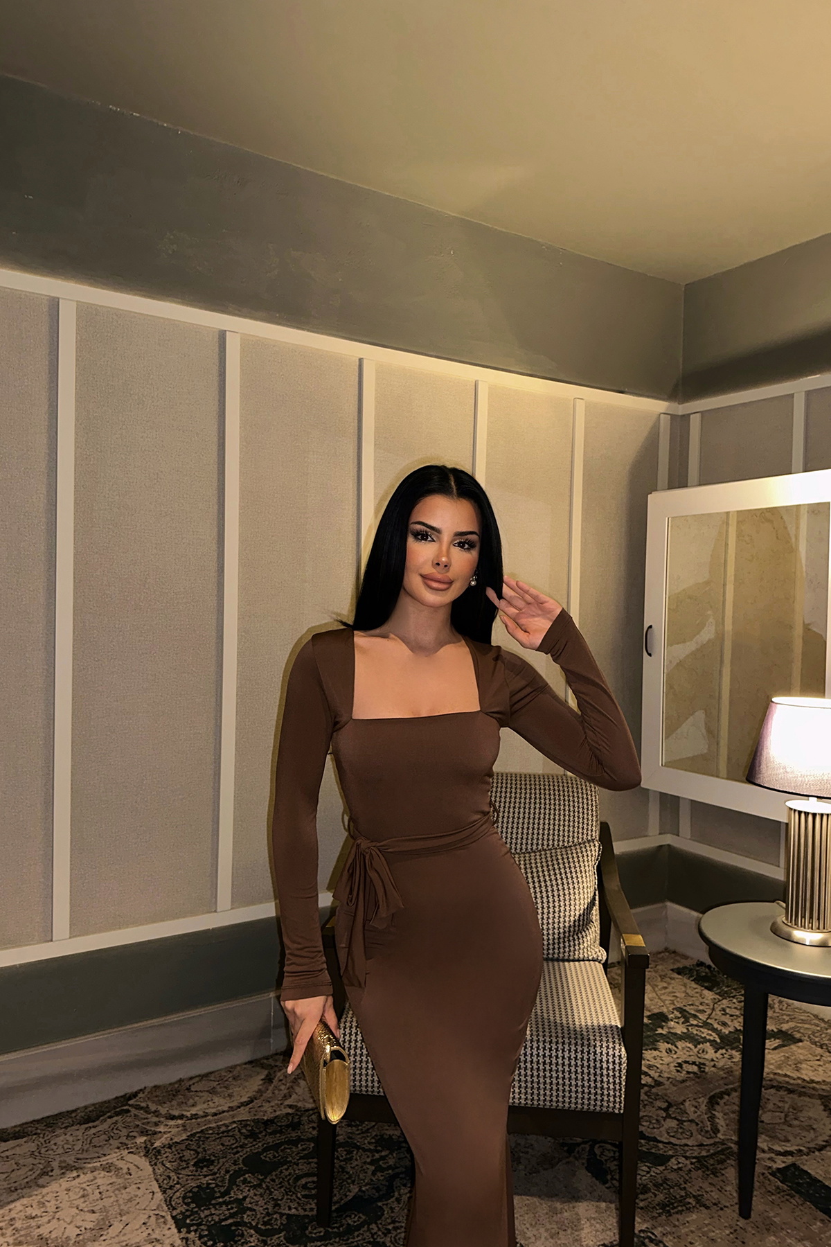 Kahverengi Amy Bağlamalı Elbise