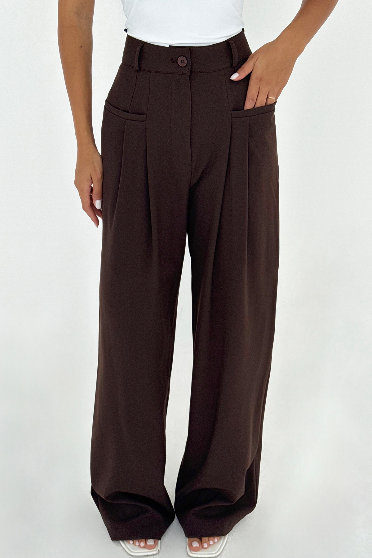 Kahverengi Kyota Cep Detaylı Pantolon – Zarif ve Rahat Tasarım